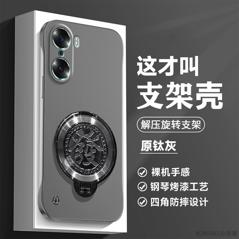 解压發字陀螺支架适用华为荣耀60手机壳新款60pro无边框保护套曲面屏专用高端se半包防摔honor高级感硬壳散热