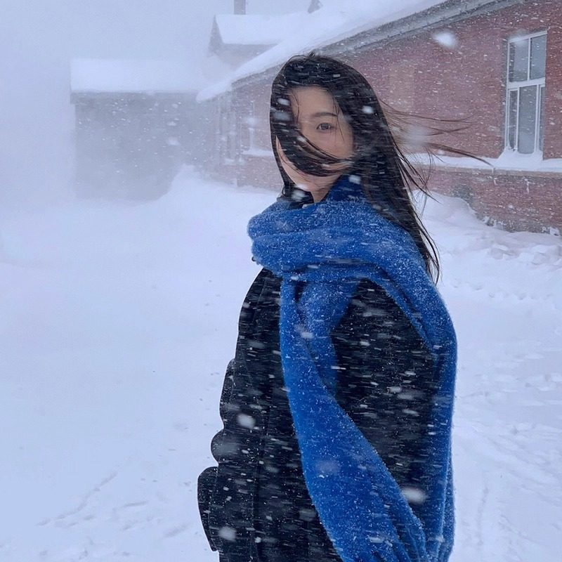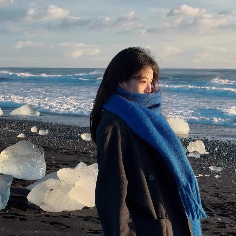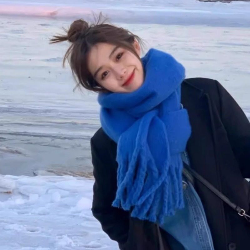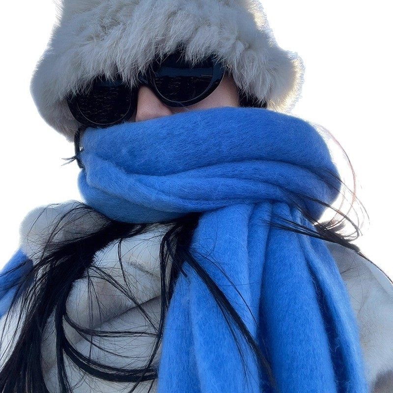 2025秋冬新款氛围感浅蓝色围巾女保暖韩版冬季纯色围脖披肩高级感