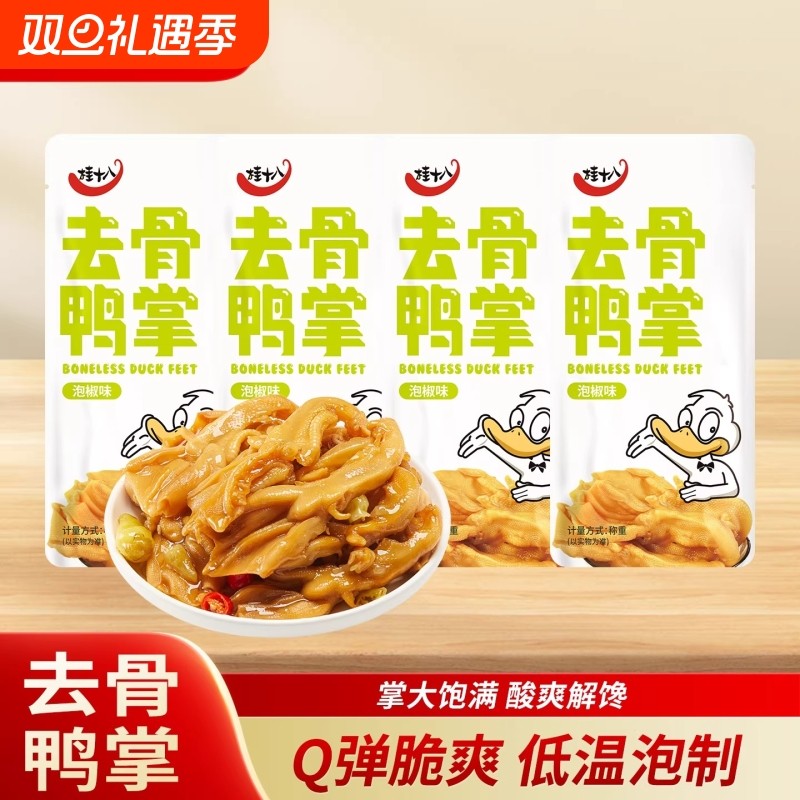 春江桂十八泡椒去骨鸭掌广西酸辣解馋零食泡鸭掌开袋即食无骨鸭爪