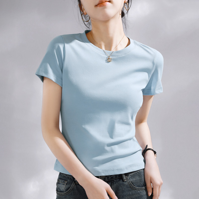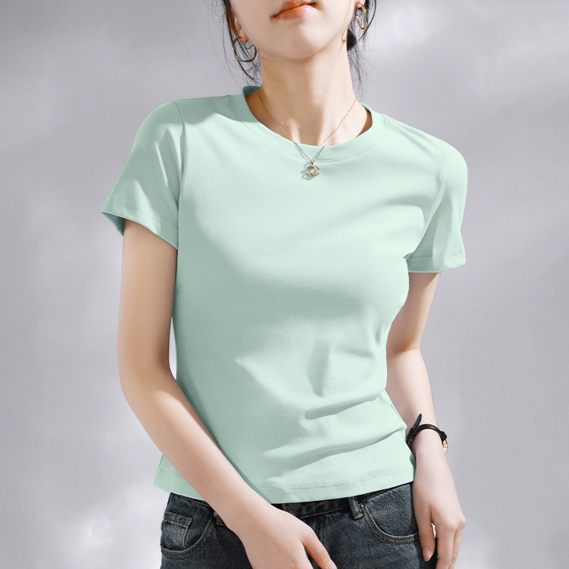 新国货100纯棉t恤女130支双面丝光棉短袖V圆领宽松大码夏季鸡心领