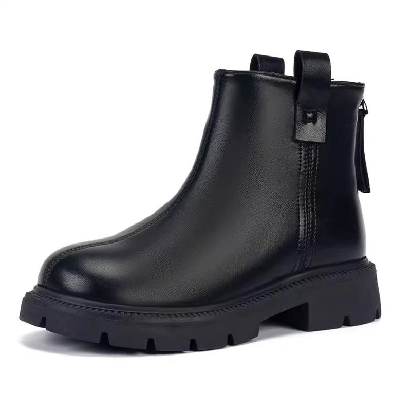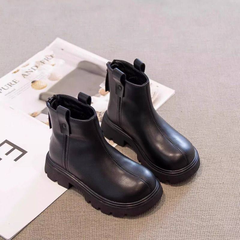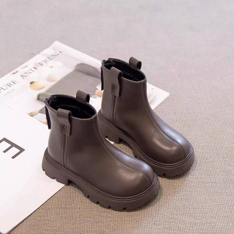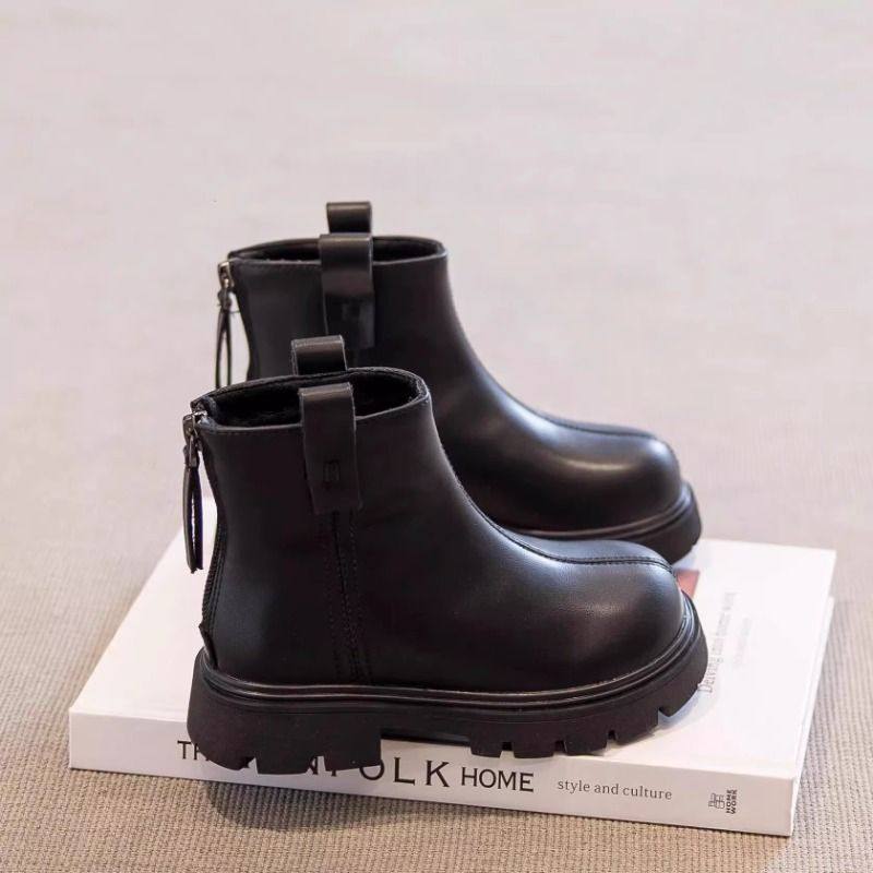 巴布豆真皮女童靴子短靴2025新款秋冬儿童时尚百搭宝宝加绒马丁靴