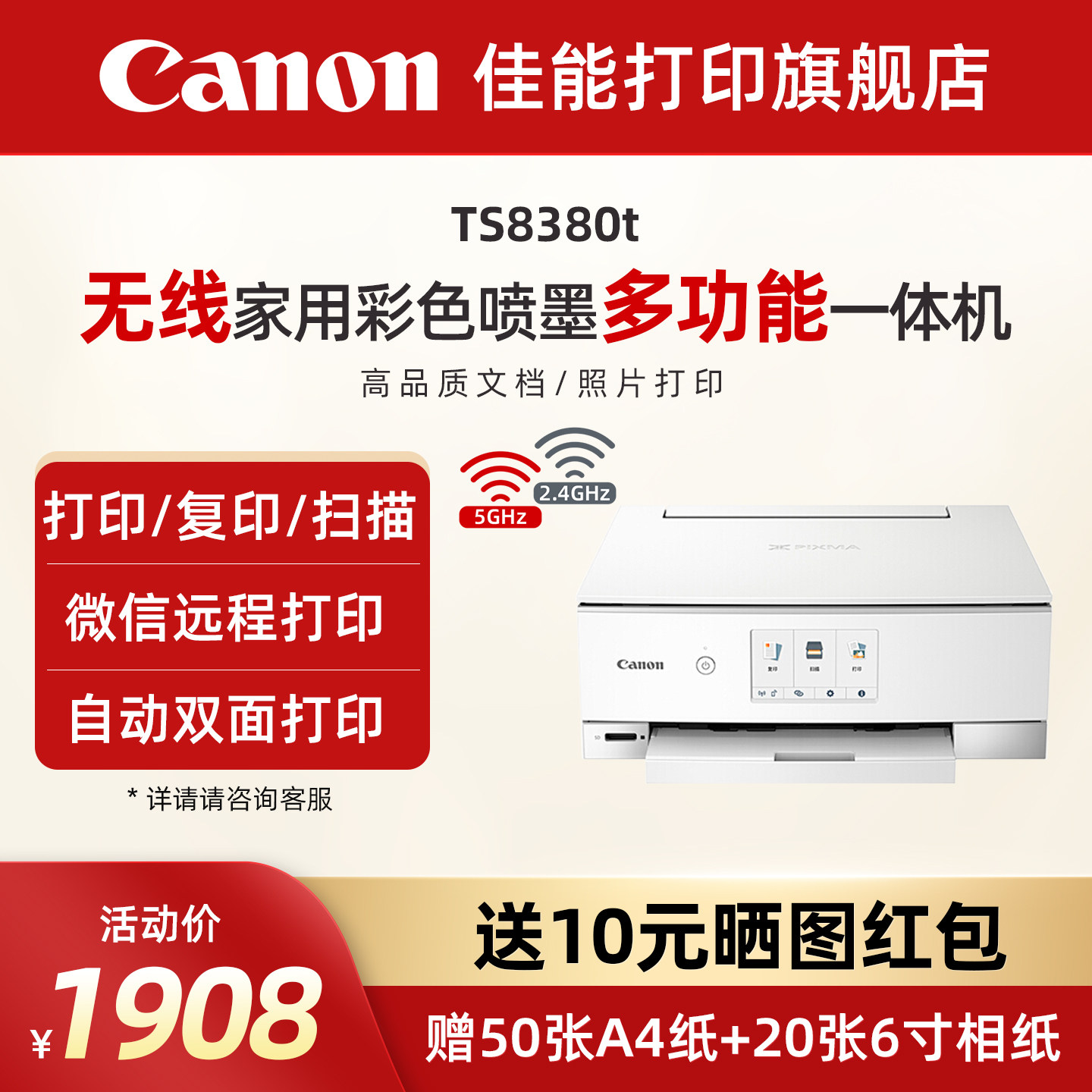佳能旗舰店TS8380t彩色A4喷墨6色打印复印扫描一体机学生家用小型微信远程打印自动双面高清照相片办公
