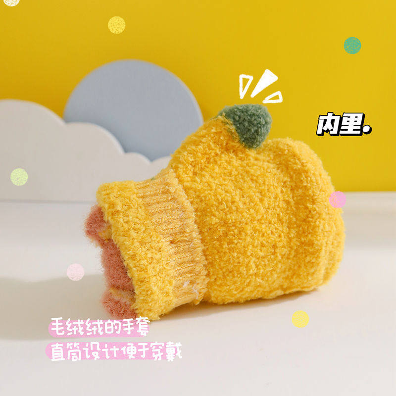 儿童手套秋冬天半指保暖宝宝女童可爱婴幼儿加厚小孩0-2岁小蘑菇