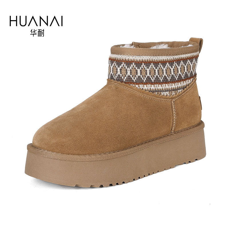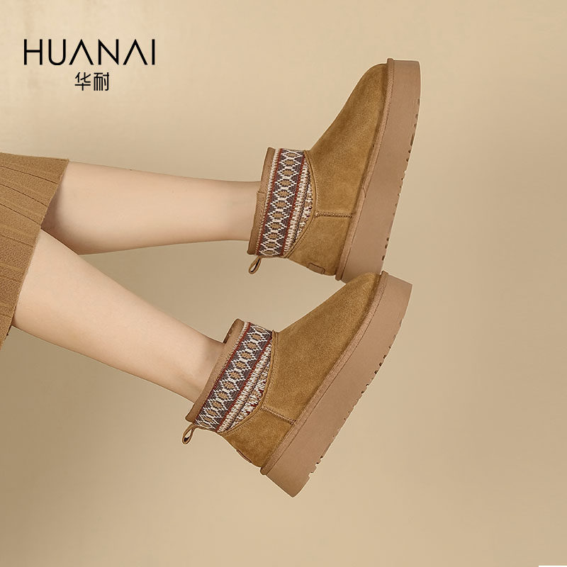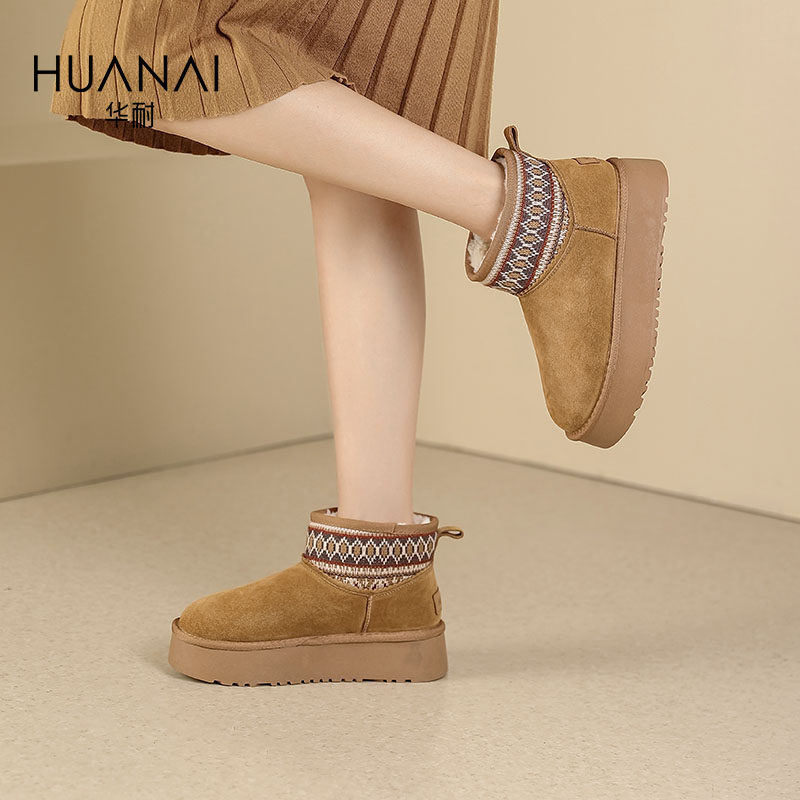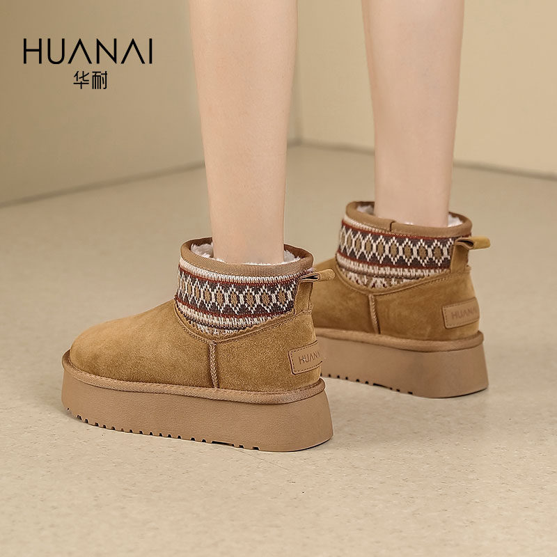 华耐雪地靴女款2025新款冬季厚底保暖加绒短靴毛毛棉鞋勃肯面包鞋