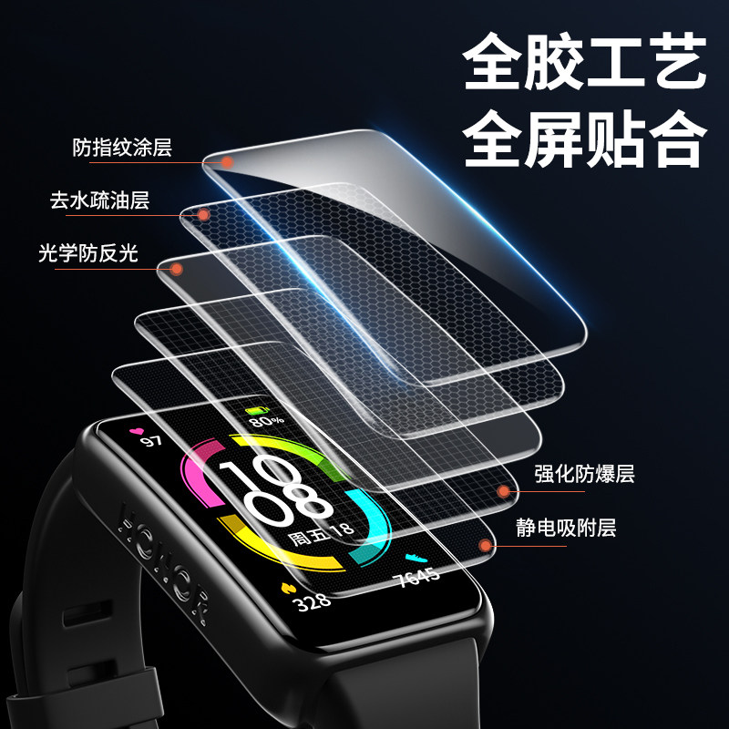 潮拍适用荣耀手环6pro保护膜5华为手环b6贴膜4pro钢化5i手表ES六代NFC五4e水凝b3青春版屏幕智能a2运动b5