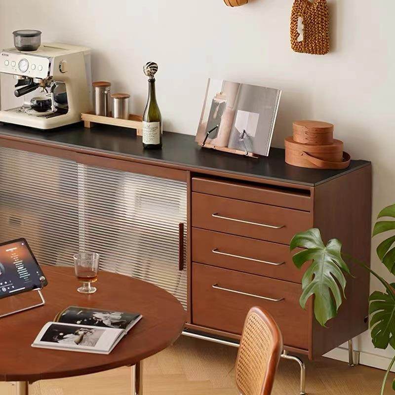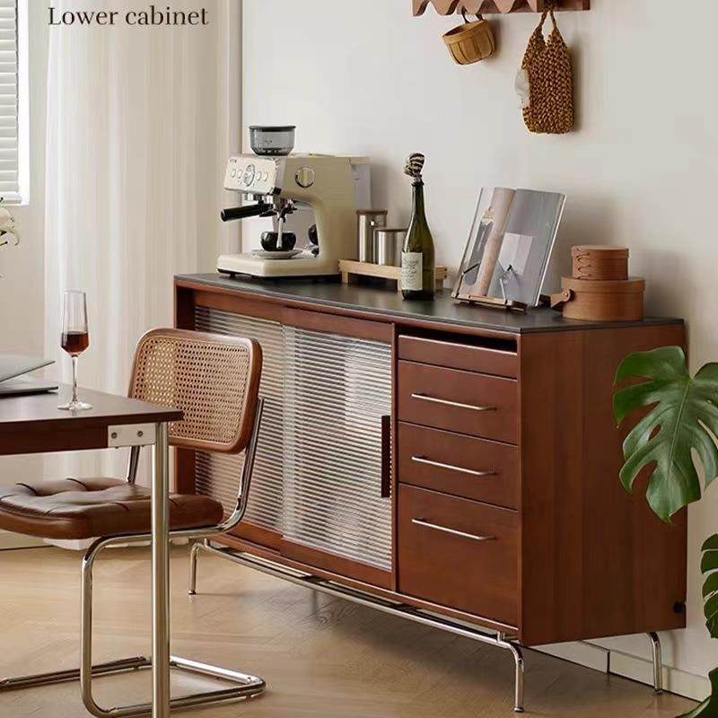 北欧实木家具餐边柜收纳储物柜岩板复古厨房小户型餐厅茶水柜共盈