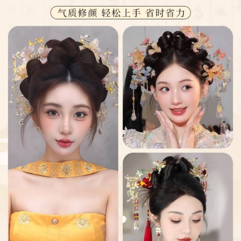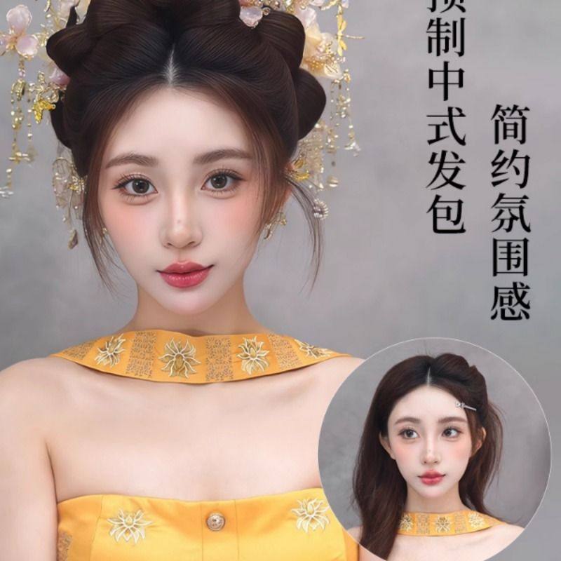 古风汉服假发髻盘发一体式发包古装明制唐风懒人造型垫发全套头饰