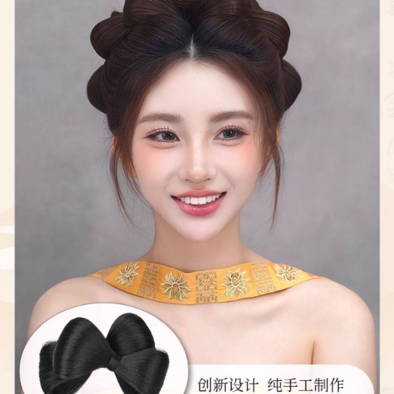 汉服假发一体式古风蝴蝶结假发盘发造型女明制发髻古装头饰垫发包