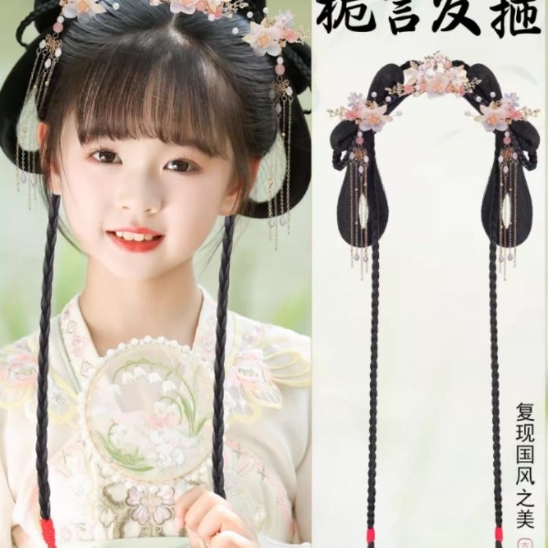 儿童汉服造型发髻汉服女童头饰古装假发包古风假发一体式发饰配饰