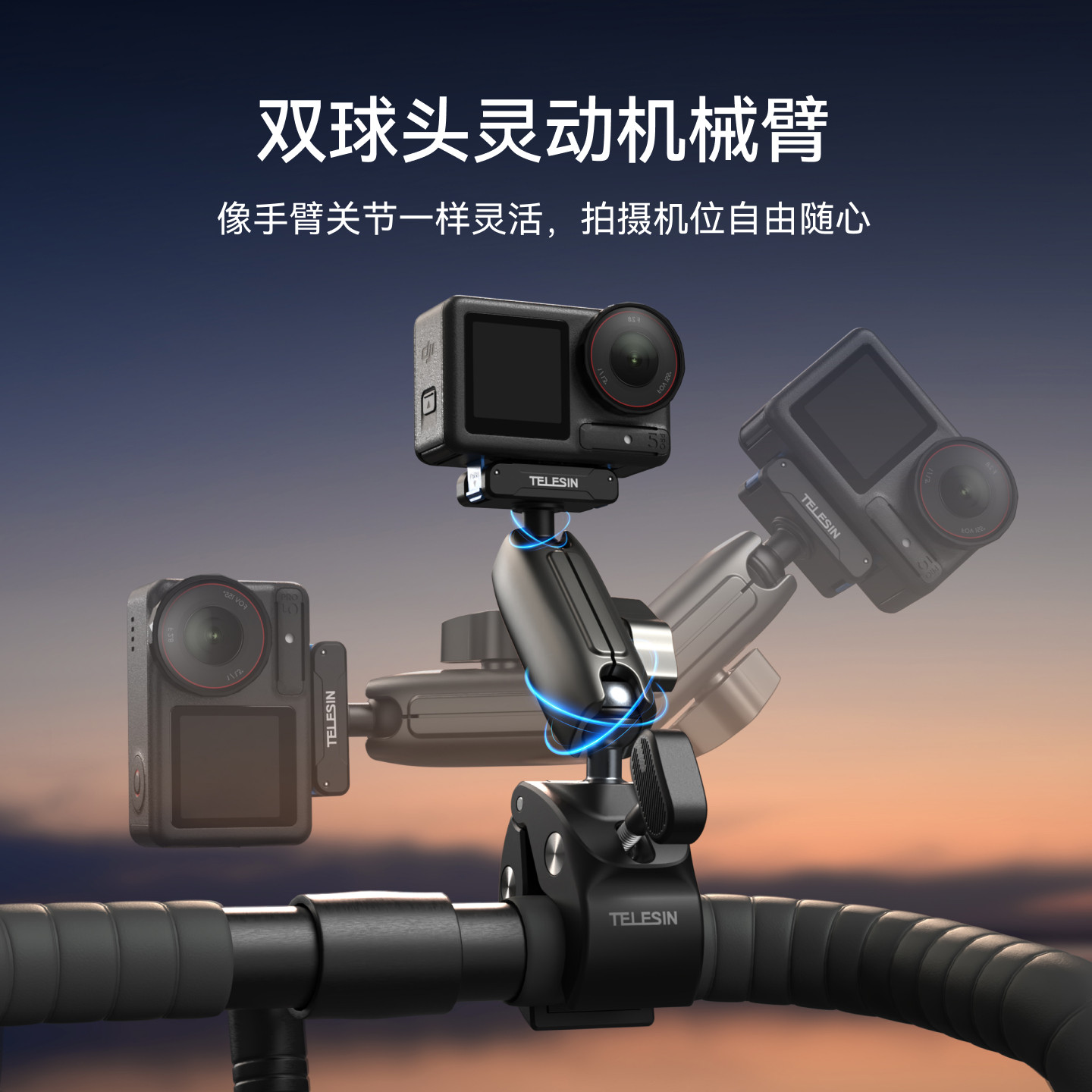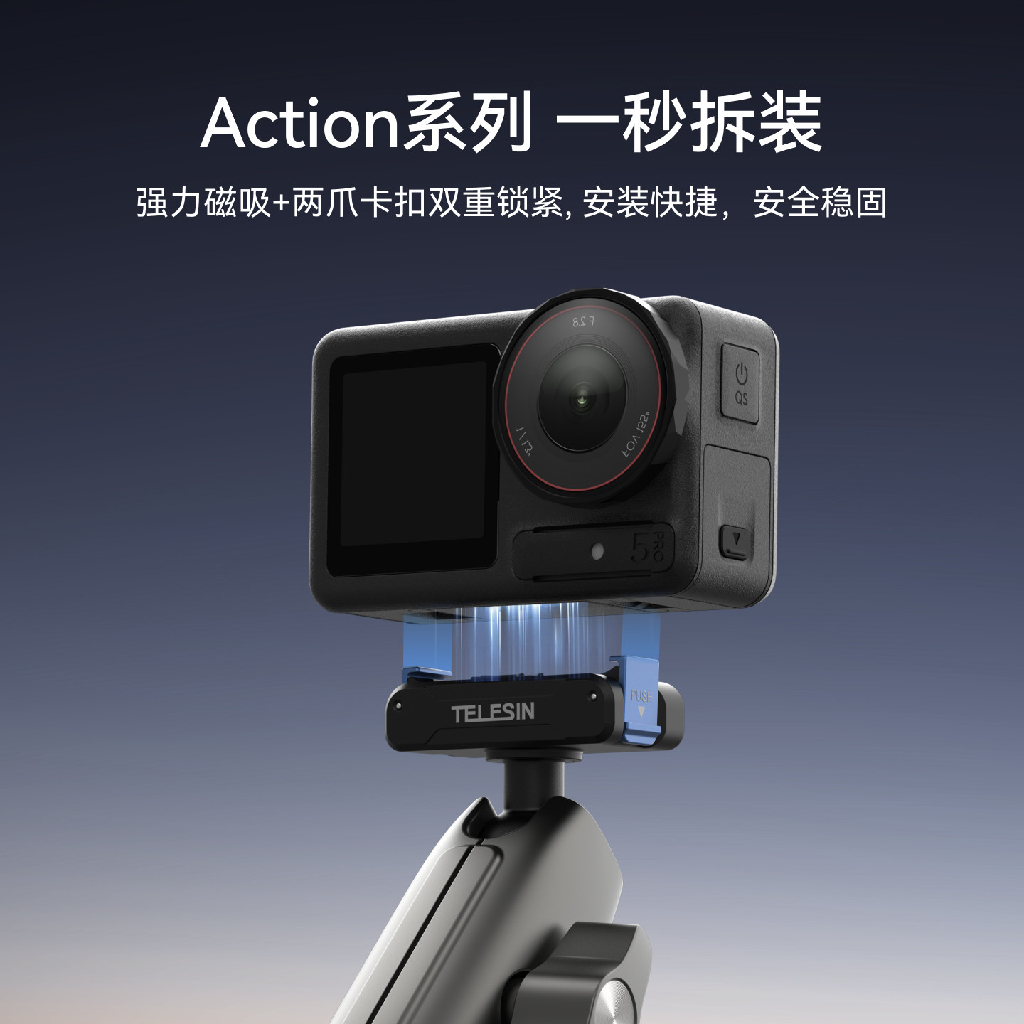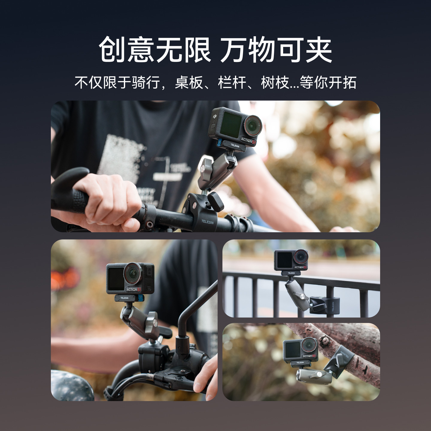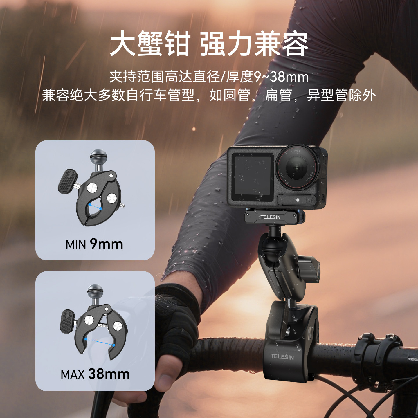 泰迅适配大疆action5pro/4/3快拆万向车管夹金属磁吸两爪转接座摩托车自行车骑行支架运动相机固定架车载配件