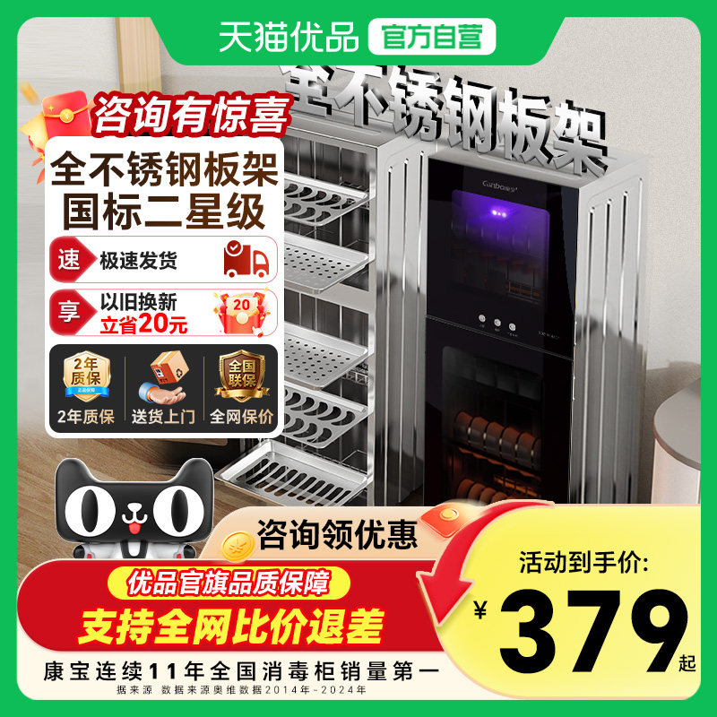 康宝立式消毒柜小型家用碗柜餐具收纳烘干一体官方正品新款碗筷柜