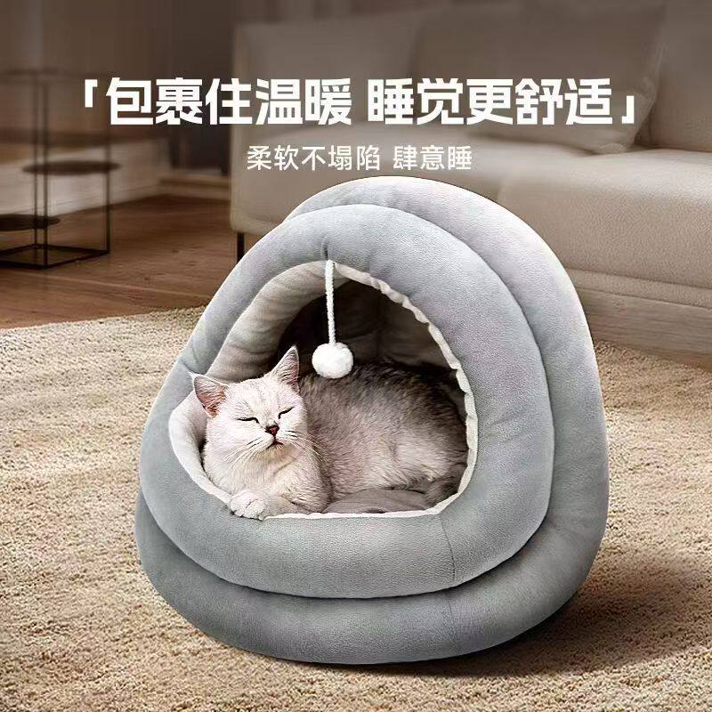 猫窝冬季保暖半封闭式可拆洗猫咪窝四季通用狗窝猫床猫屋幼猫窝垫