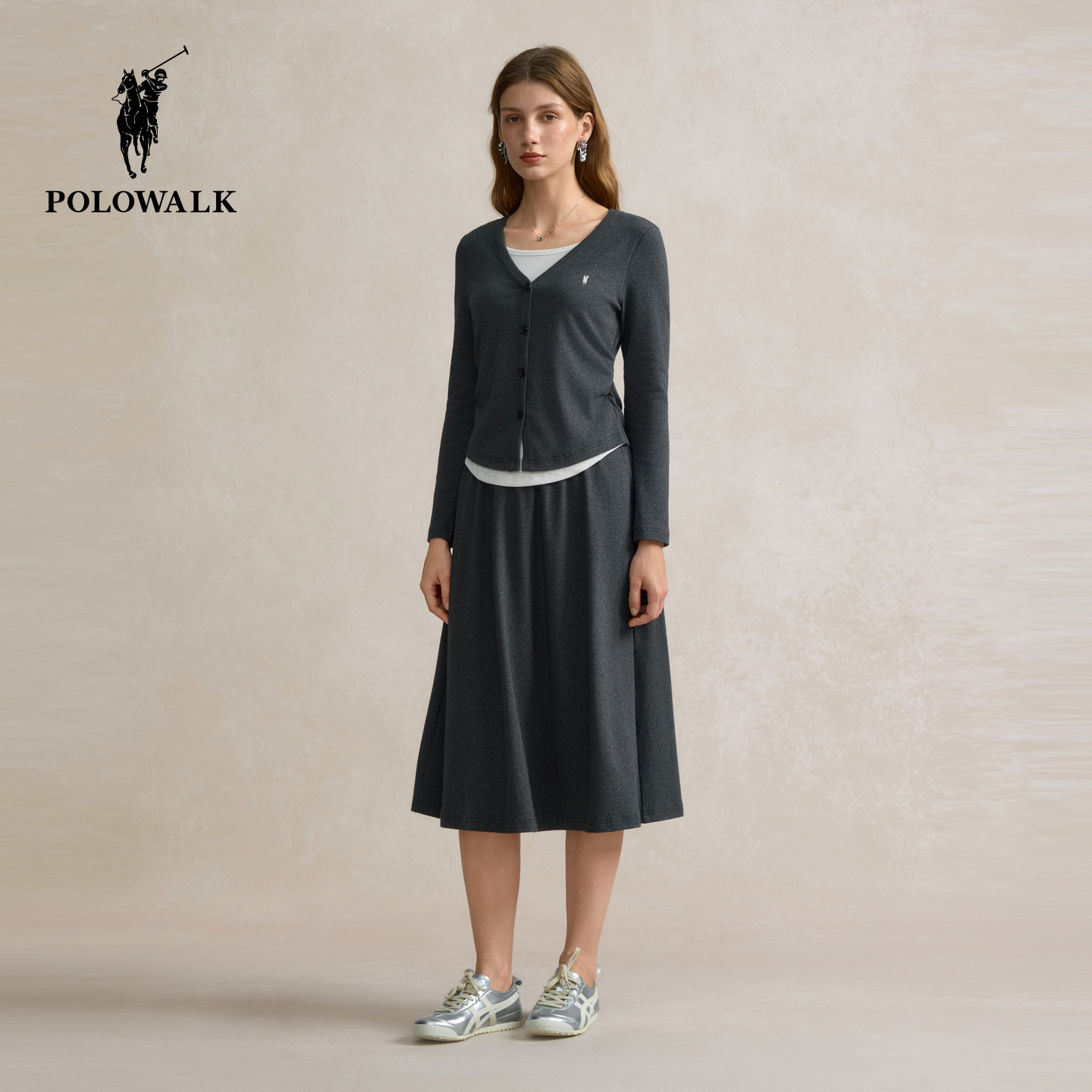 POLOWALK女式半裙2025秋冬裤新品松紧腰A字版半身裙休闲简约裙子