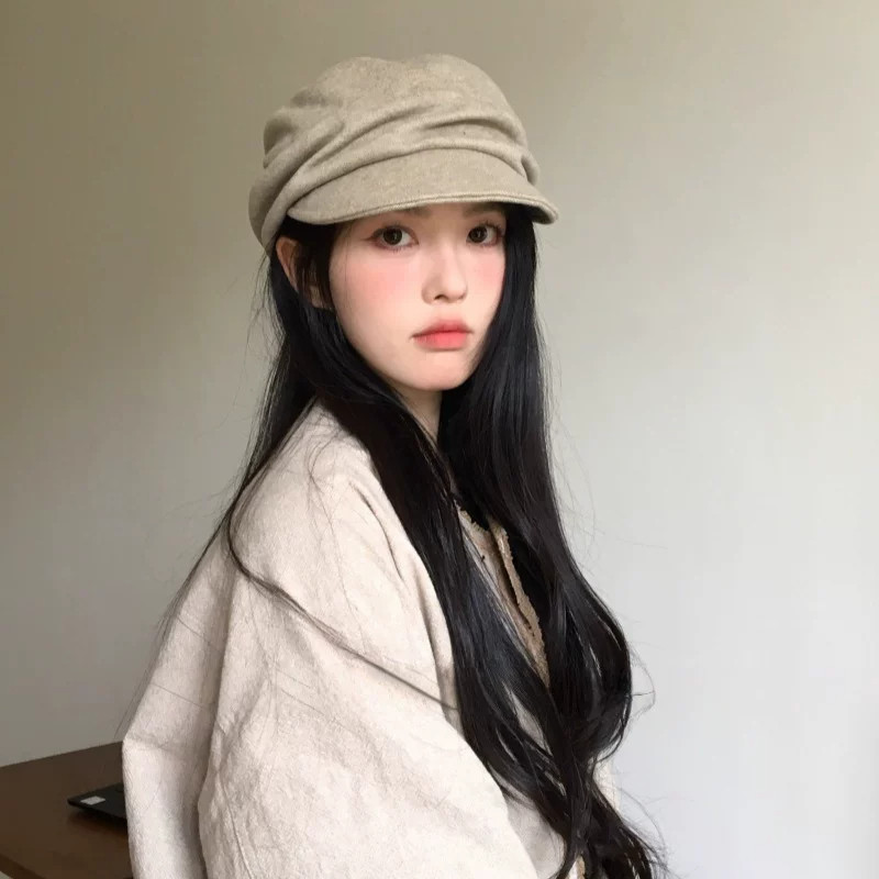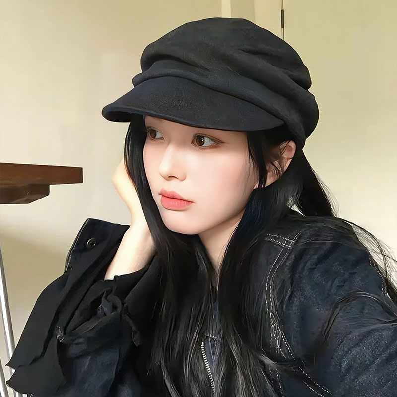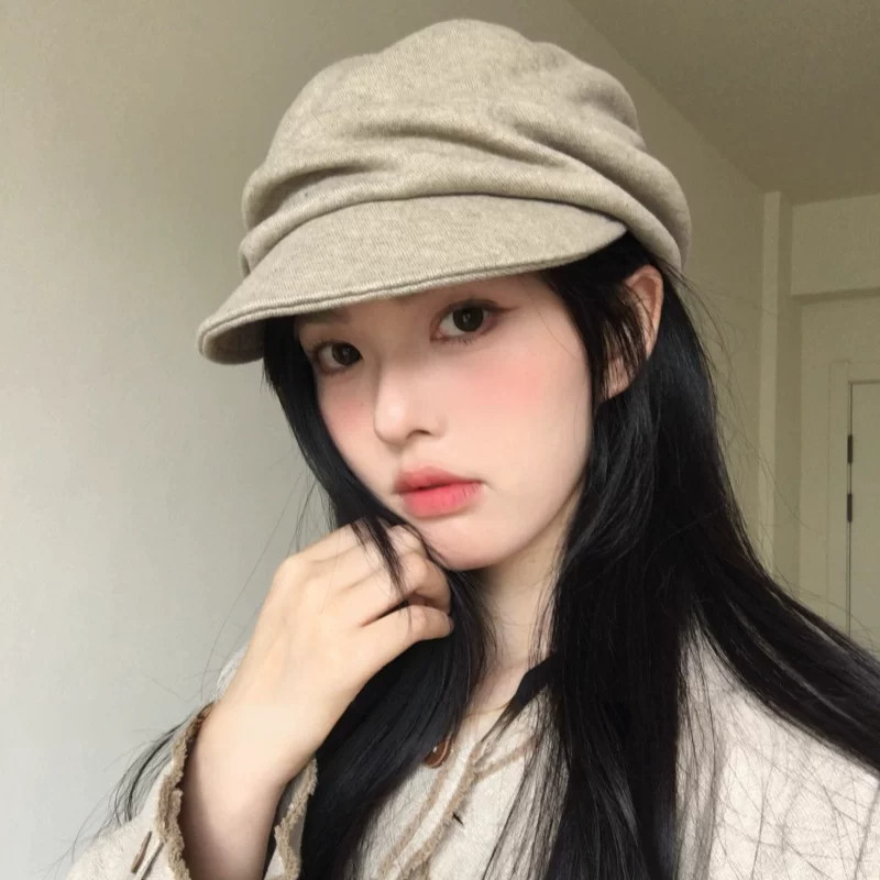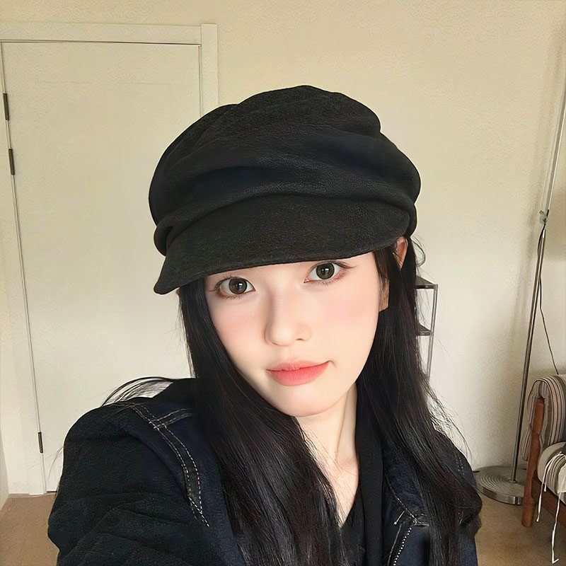 日系山本风褶皱贝雷帽2025秋冬季显脸小报童帽大头围百搭帽子防风