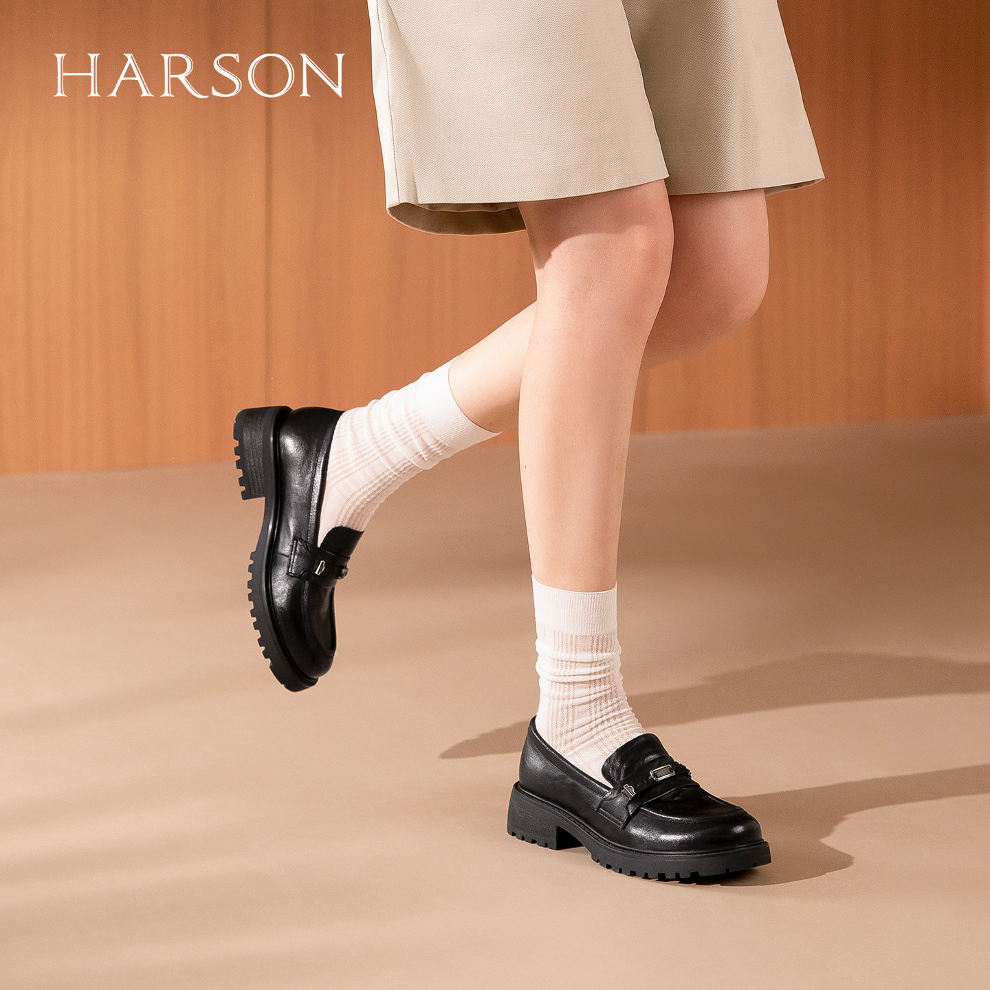 哈森经典老钱风乐福鞋时尚静音舒适百搭豆豆鞋2026新款HWS260138