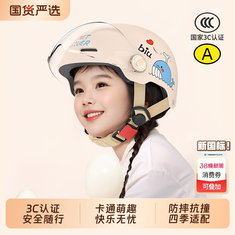 新国标3c认证儿童头盔男女孩6到12岁电动摩托车3到6岁四季安全帽