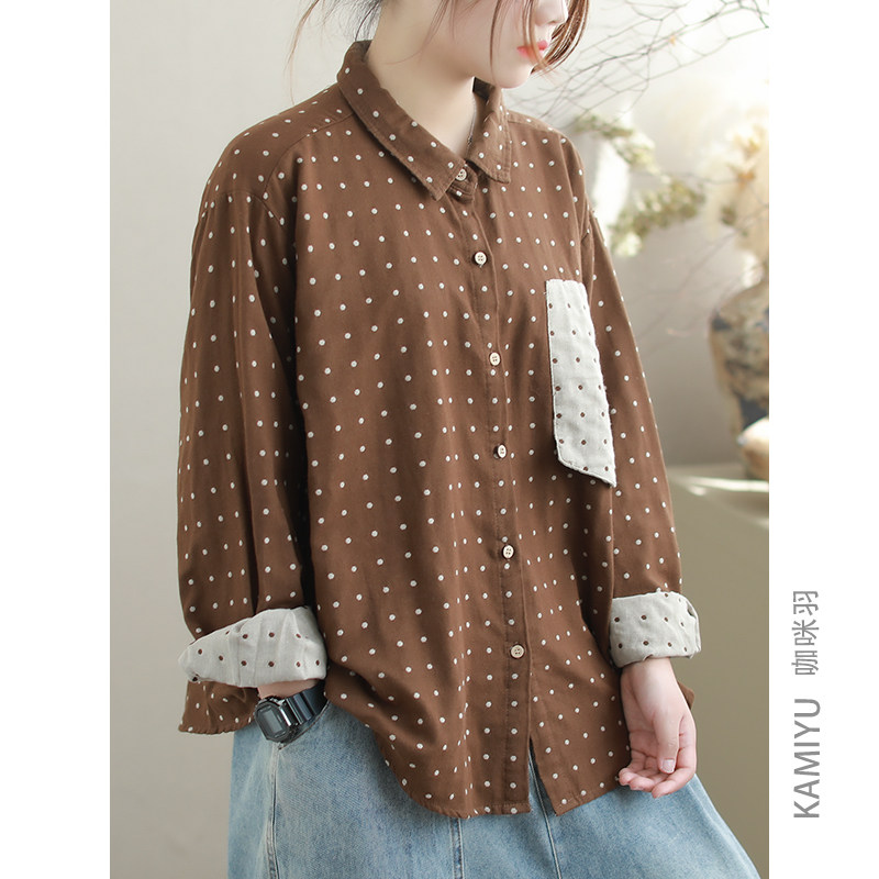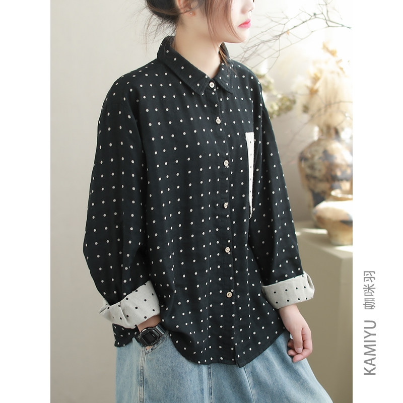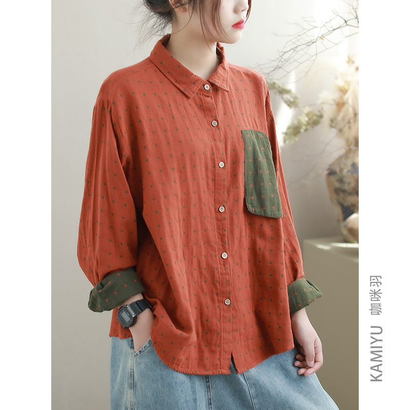咖咪羽衬衫女秋装新款时尚休闲百搭复古棉质文艺气质女双上衣开衫