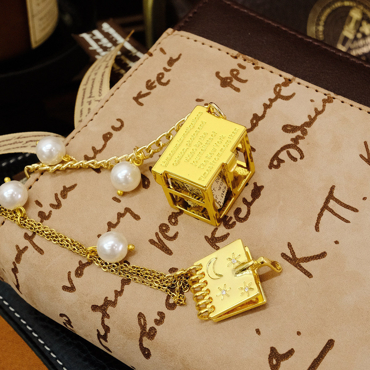 精致铜镀金轻奢迷你活页手帐挂件旧书信箱子A5678装饰链条挂链