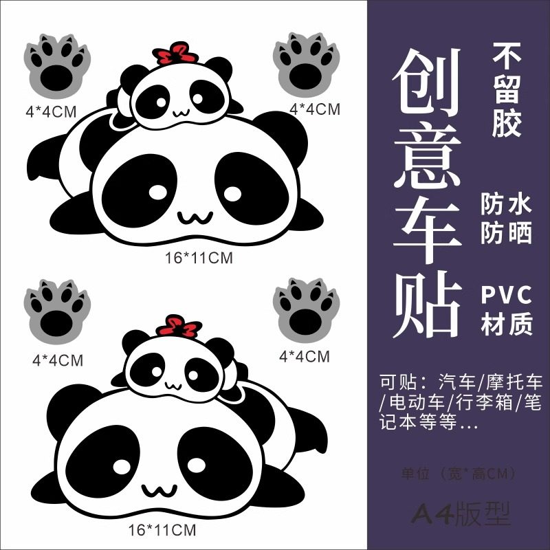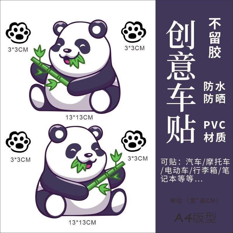熊猫行李箱贴纸防水不留胶大号旅行箱滑板车笔记本改造装饰贴纸丢