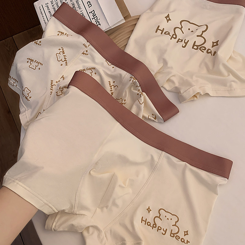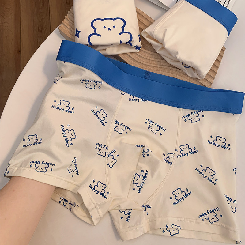 男士内裤纯棉抗菌四角短裤衩青少年男生可爱小熊平角裤秋冬季棉质