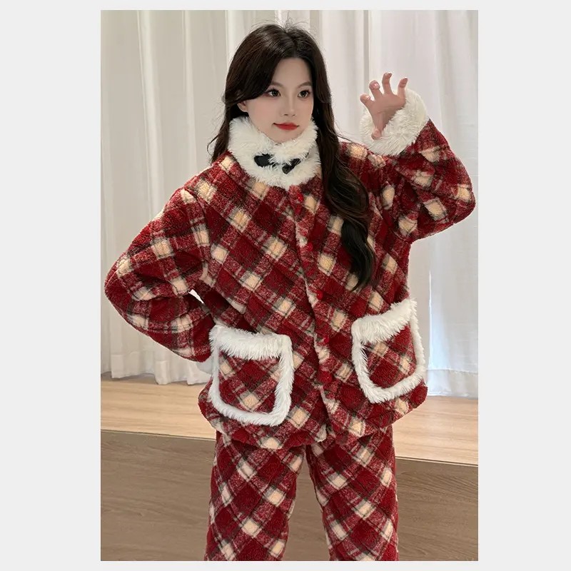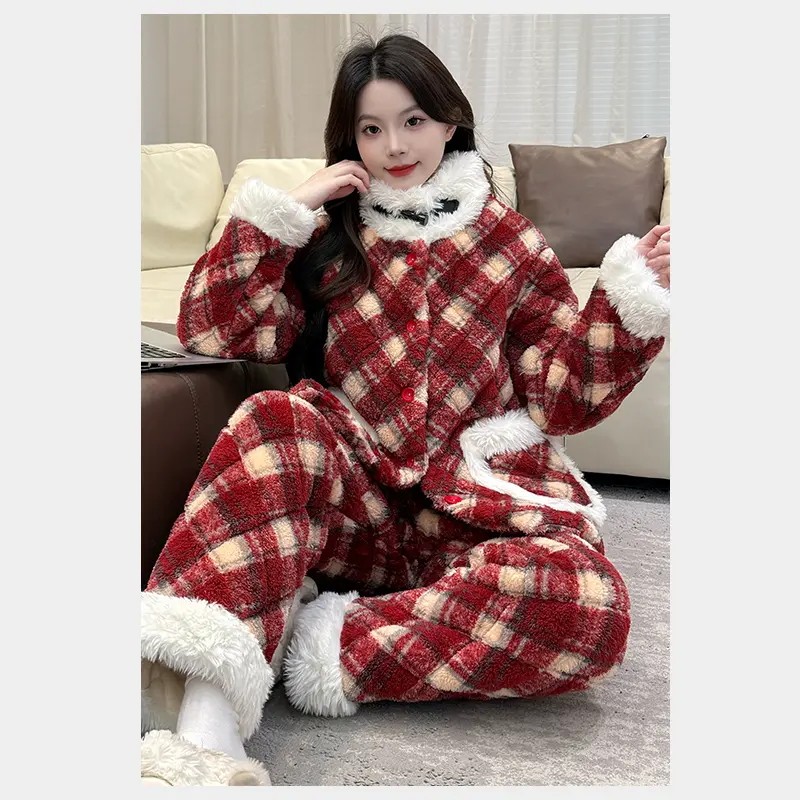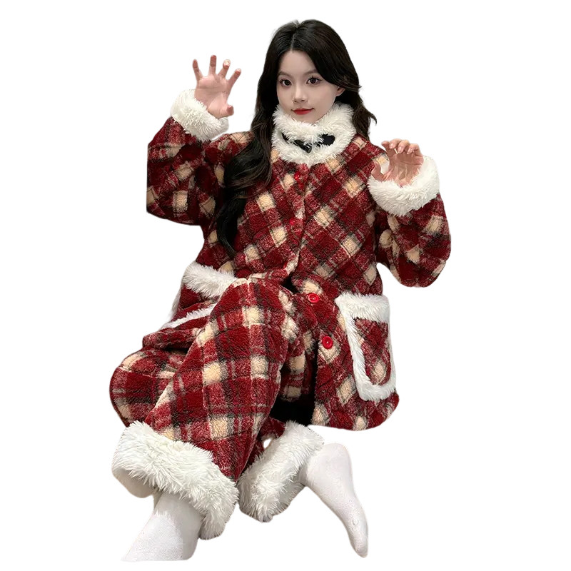 睡衣女冬季加厚三层夹棉2026新款珊瑚绒保暖女士可外穿家居服加绒