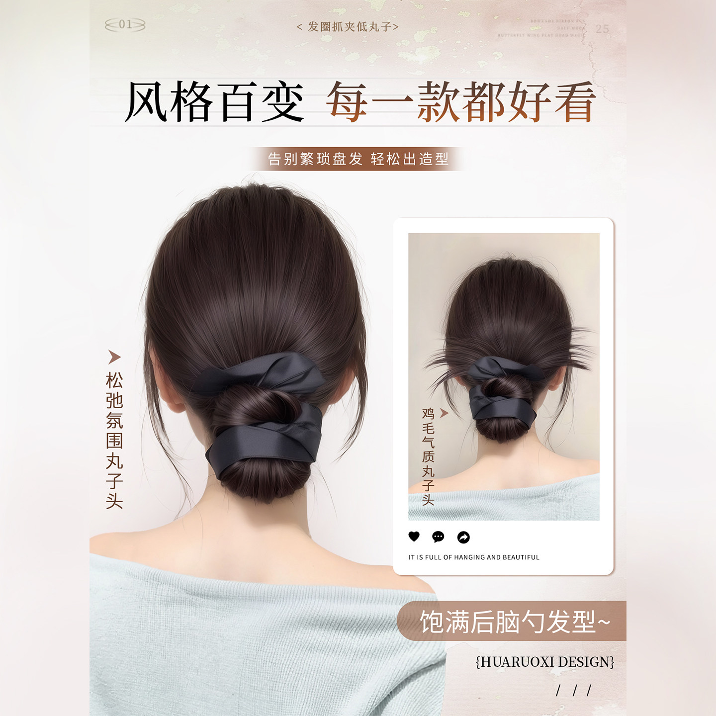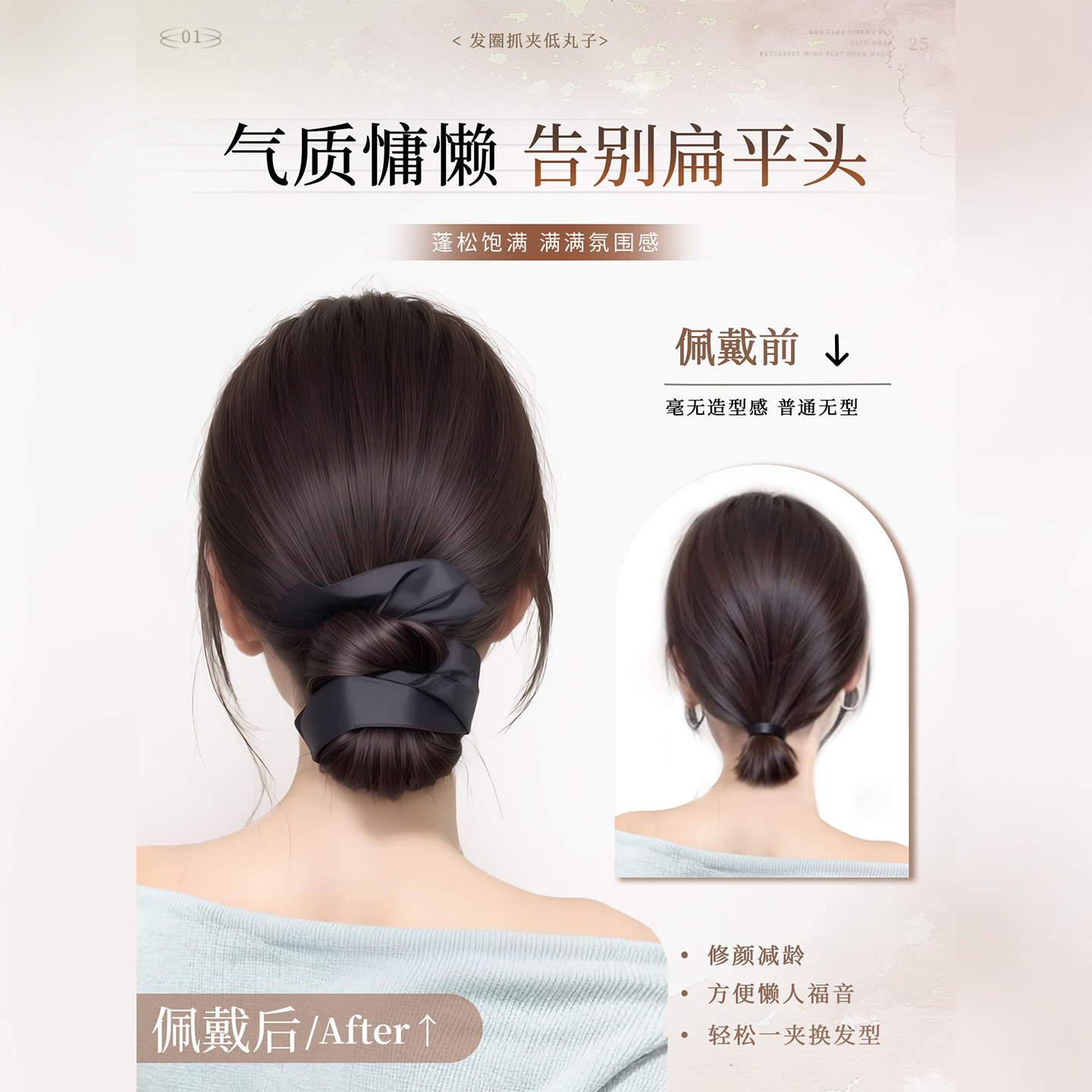 低扎丸子头假发抓夹女盘发发包蓬松后脑勺神器发圈短发真发发量少