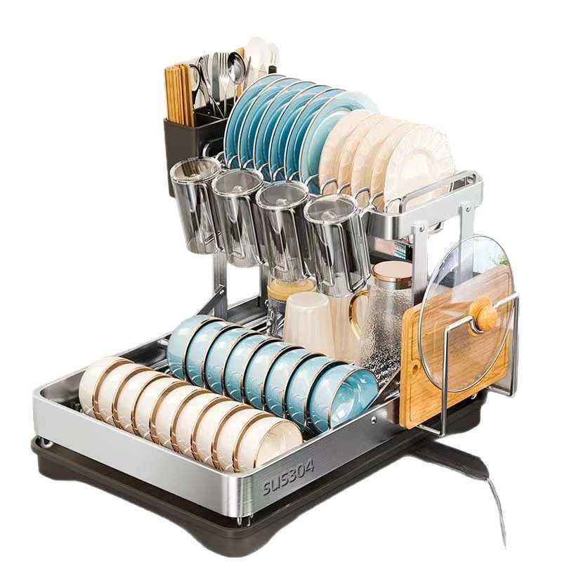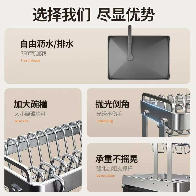 不锈钢碗碟收纳架厨房台面式多层碗架沥水架免打孔碗盘碗筷置物架
