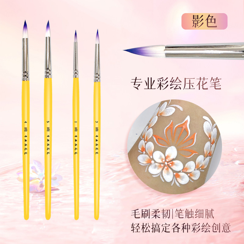 彩色绘画笔专业彩绘压花笔软头笔5支装绘画彩妆画笔套装高性价比