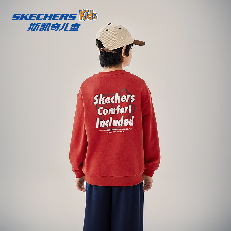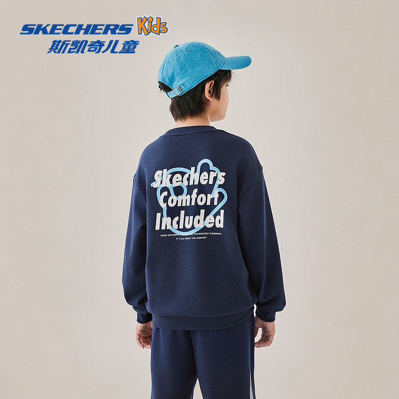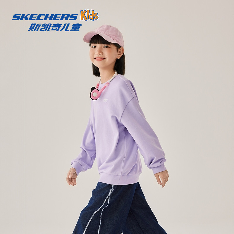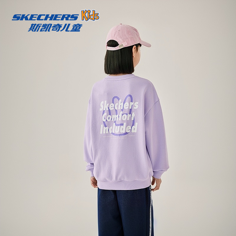 Skechers斯凯奇儿童卫衣秋季童装男女童宽松舒适时尚百搭字母上衣