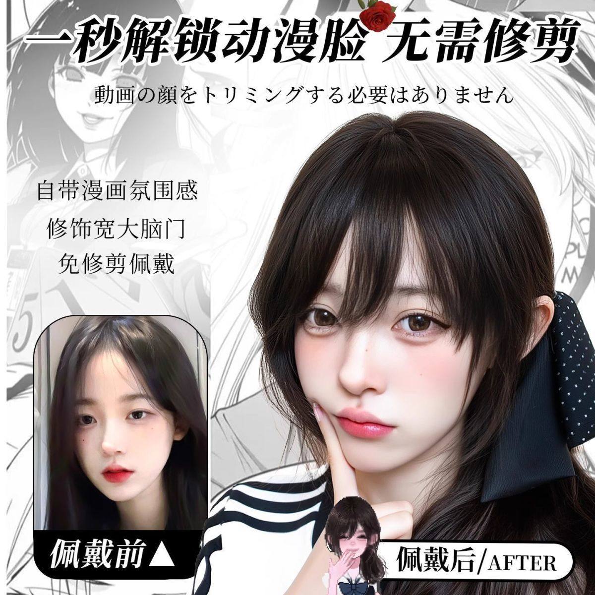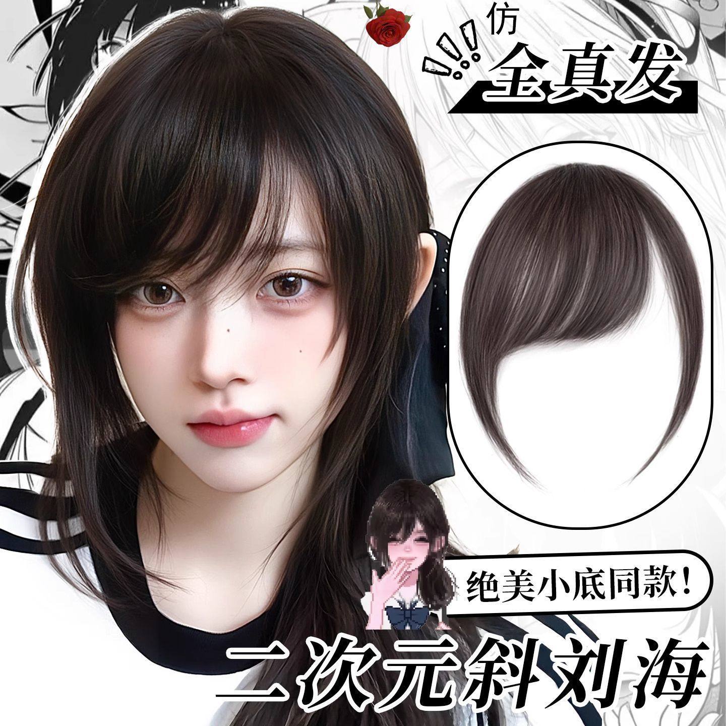 刘海假发片假刘海女头顶仿真发自然前额补发古早斜刘海无痕轻薄款