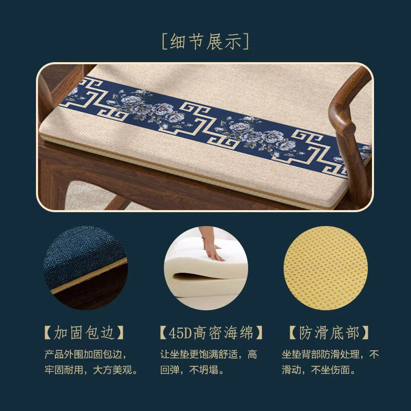 坐垫可拆洗亚麻学生久坐椅子垫办公室坐垫高密度海绵垫餐椅茶椅垫