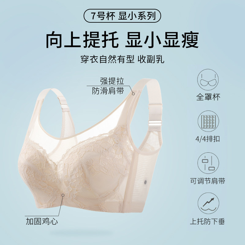 润微提拉女王内衣女大胸显小无痕大码调整防下垂收副乳粉底液文胸