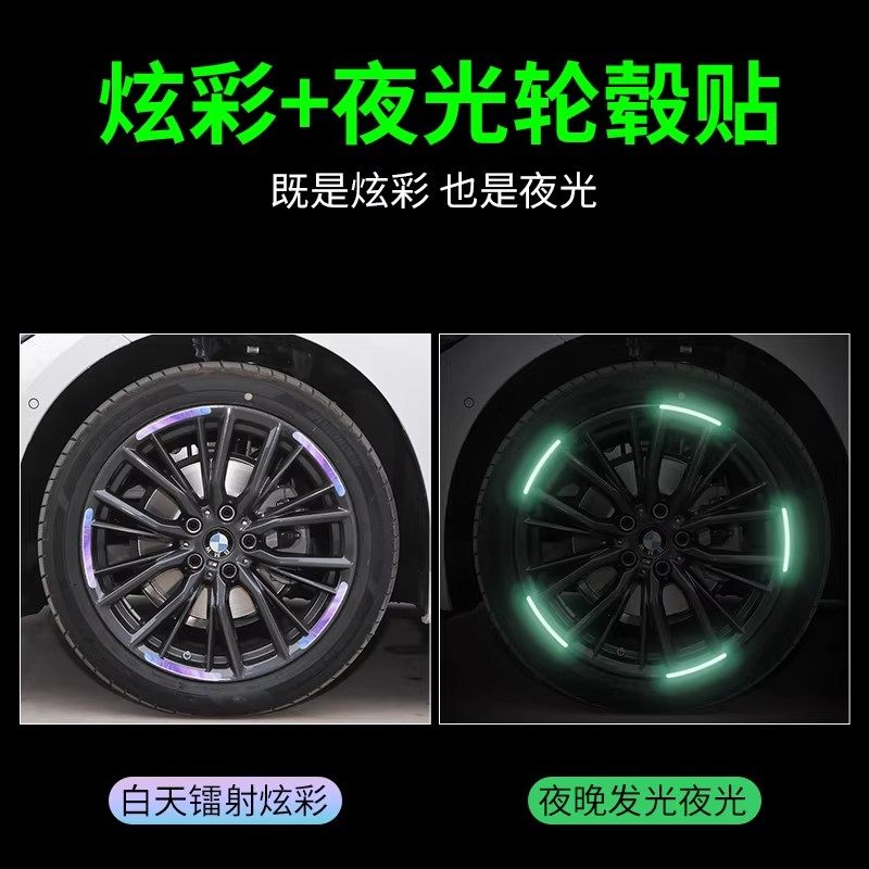 汽车轮毂反光贴轮胎警示贴纸个性创意炫彩电动车彩虹夜光装饰车贴