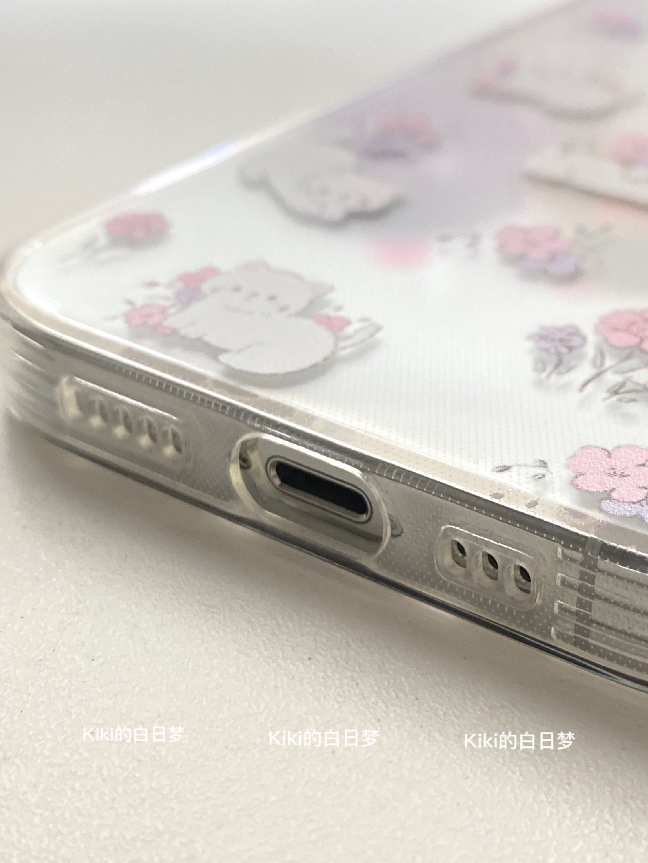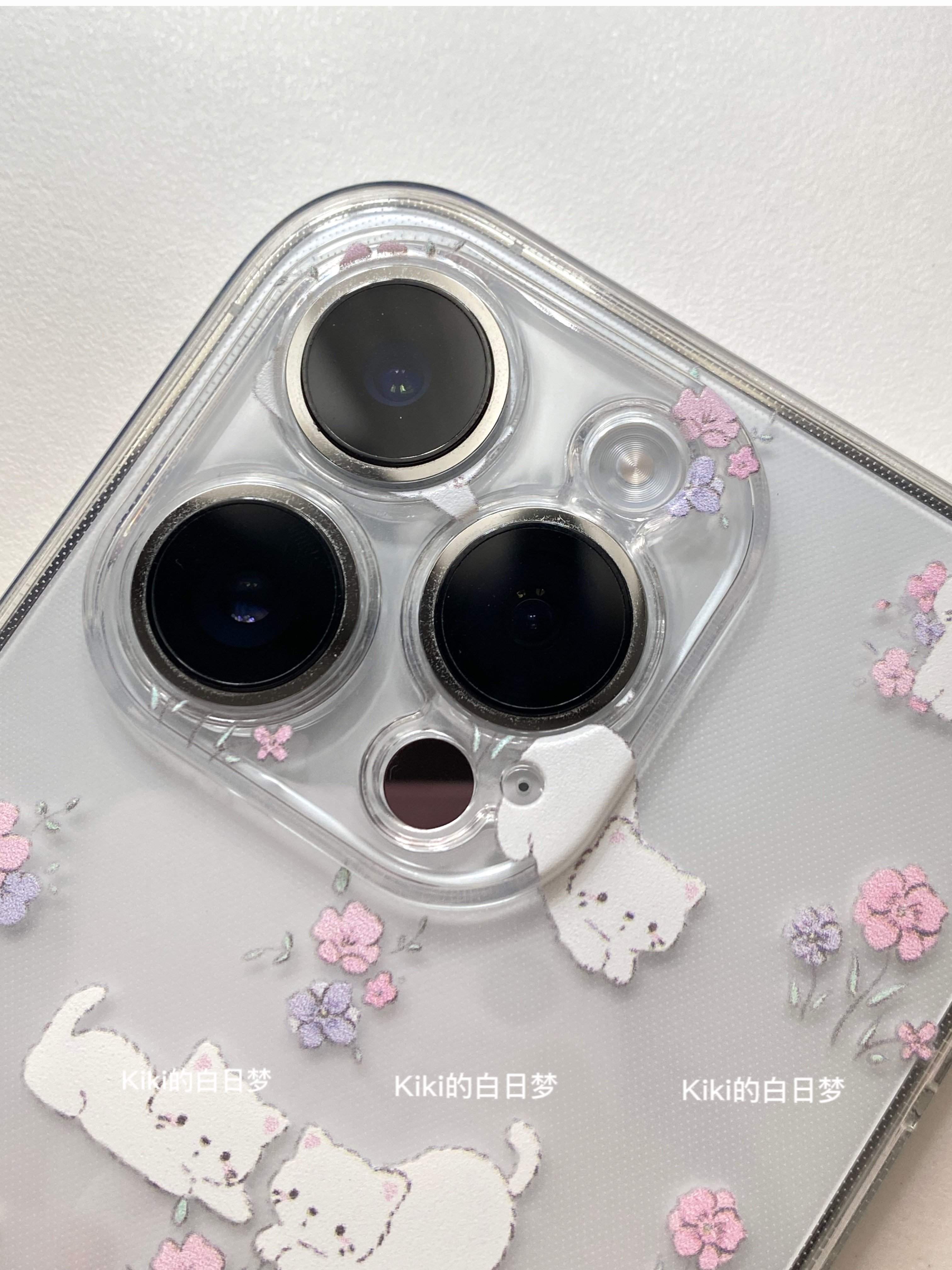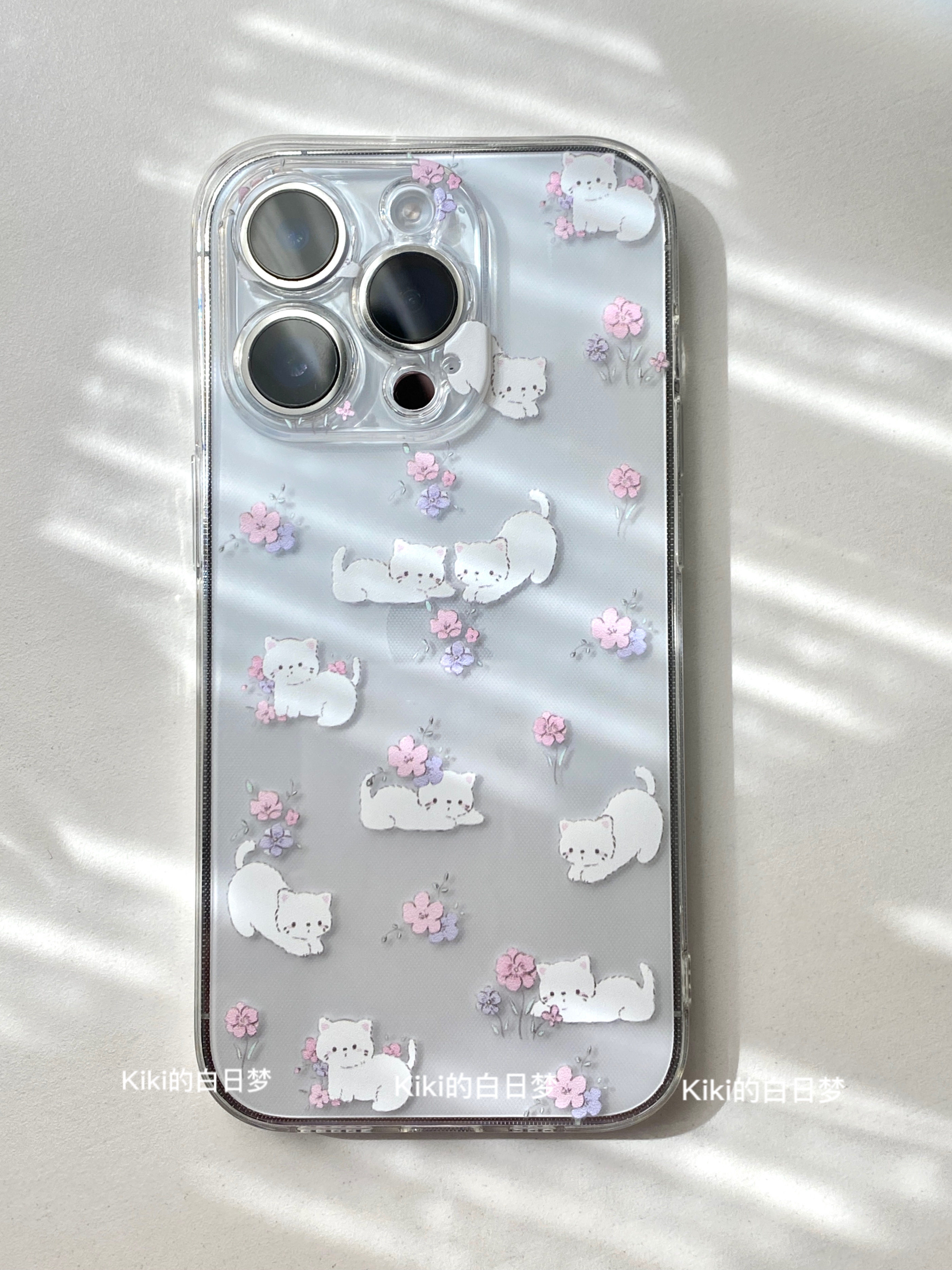 kiki白日梦小碎花粉紫色小猫适用苹果iphone16pro高透软壳防摔ins紫色猫咪15promax可爱手机