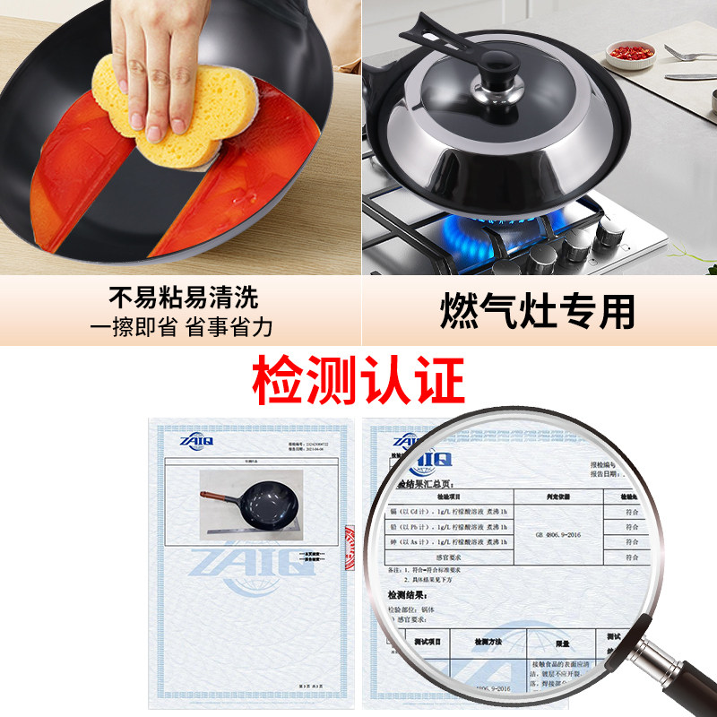 三四钢?不锈钢0涂层炒锅家用316L食品级加厚圆底炒菜锅官方正品