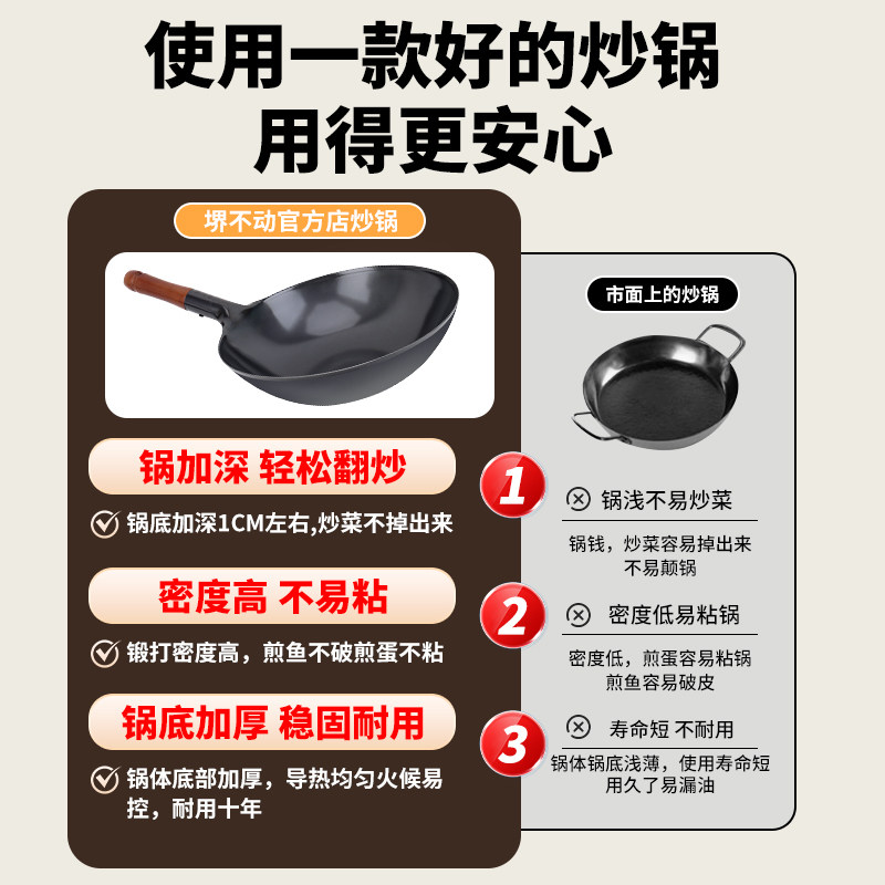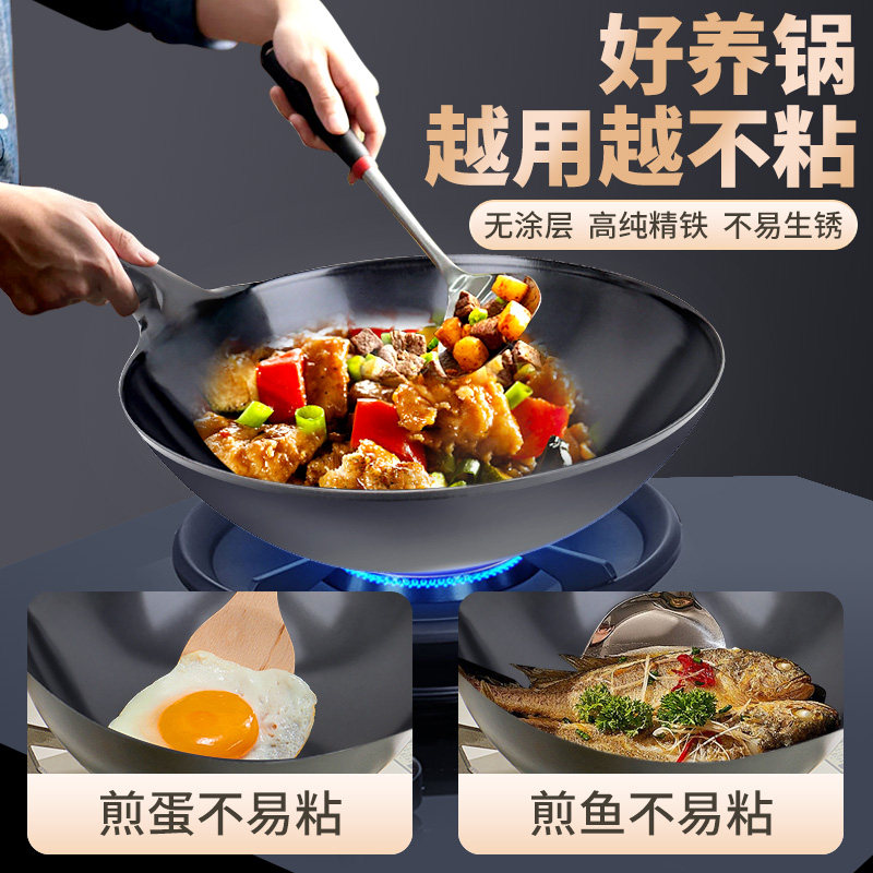 章丘铁锅官方旗舰店正品铁锅炒锅手工锻打无涂层不粘炒菜家用轻音