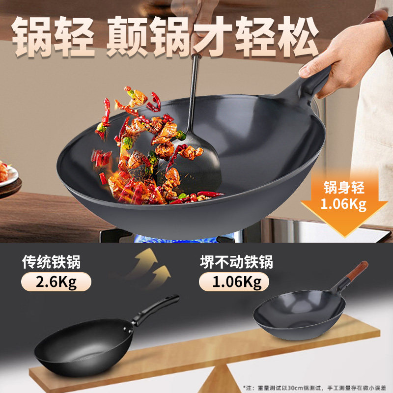 日本原装进口老式铁锅无涂层不易粘家用熟铁炒菜锅燃气灶专用炒锅