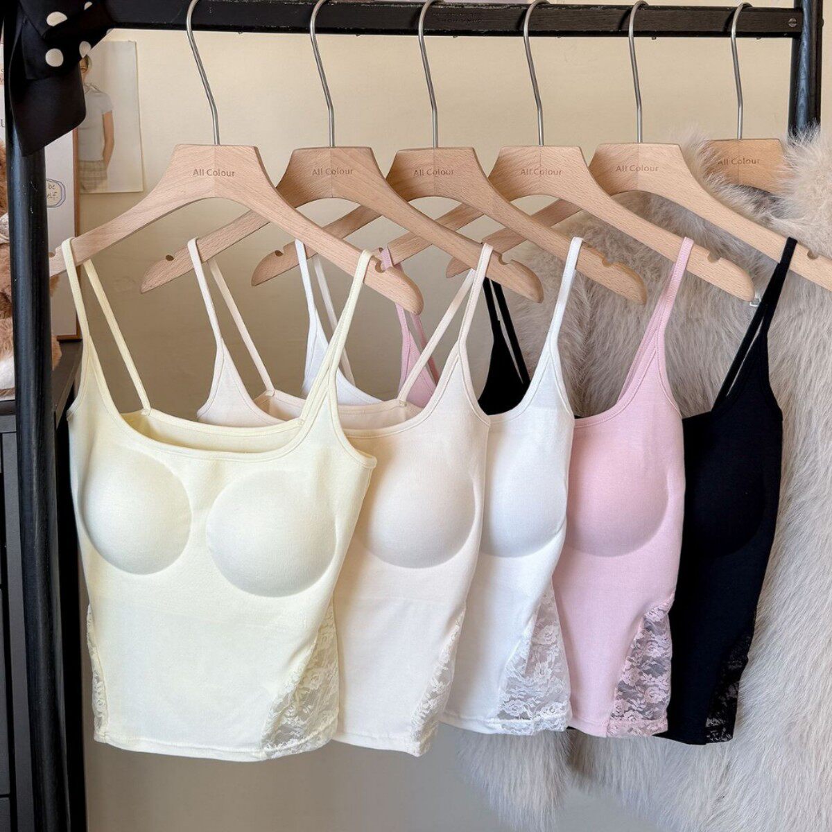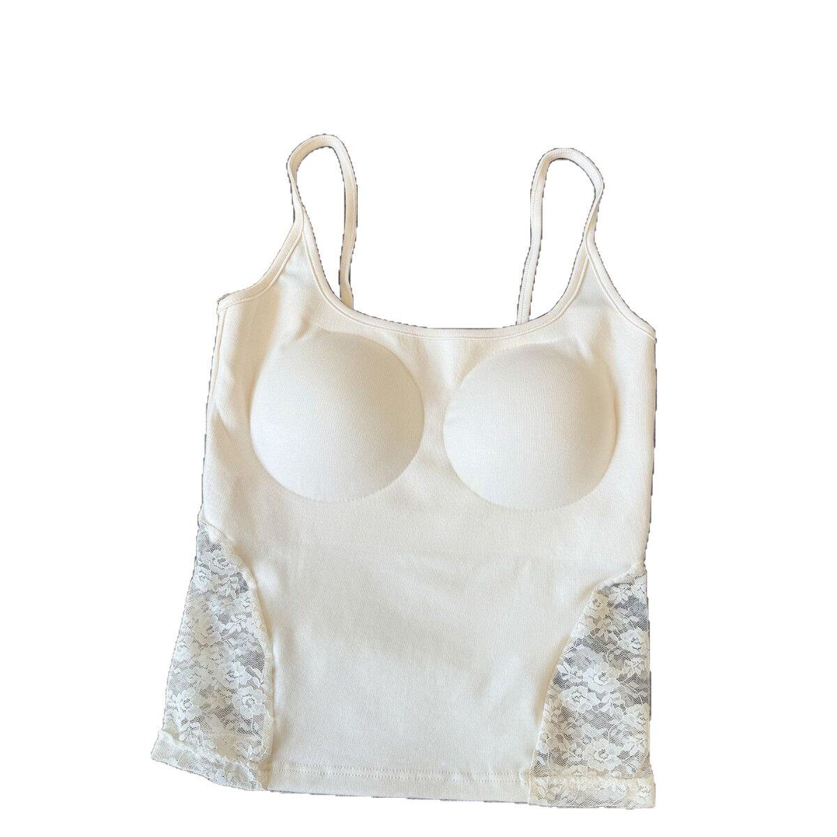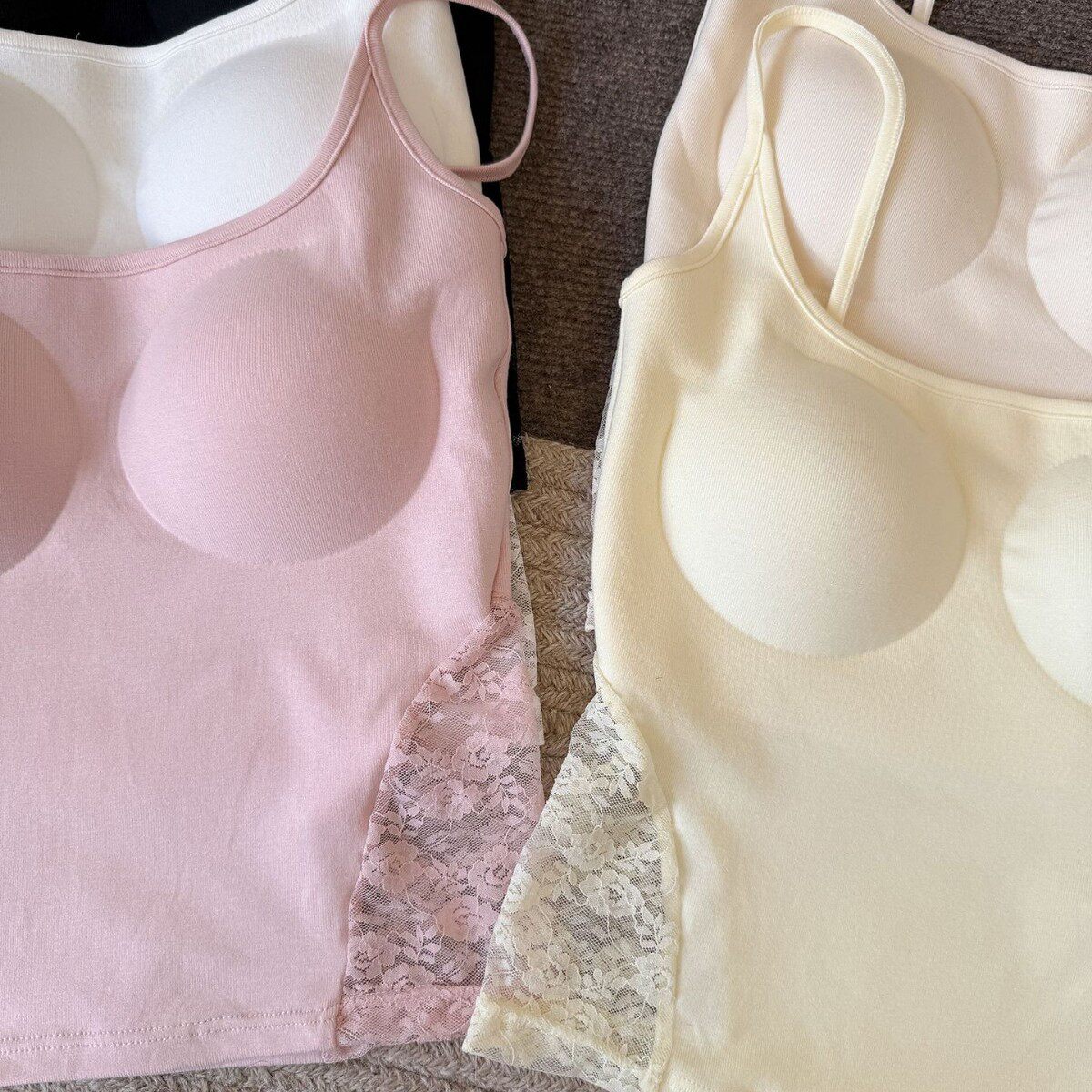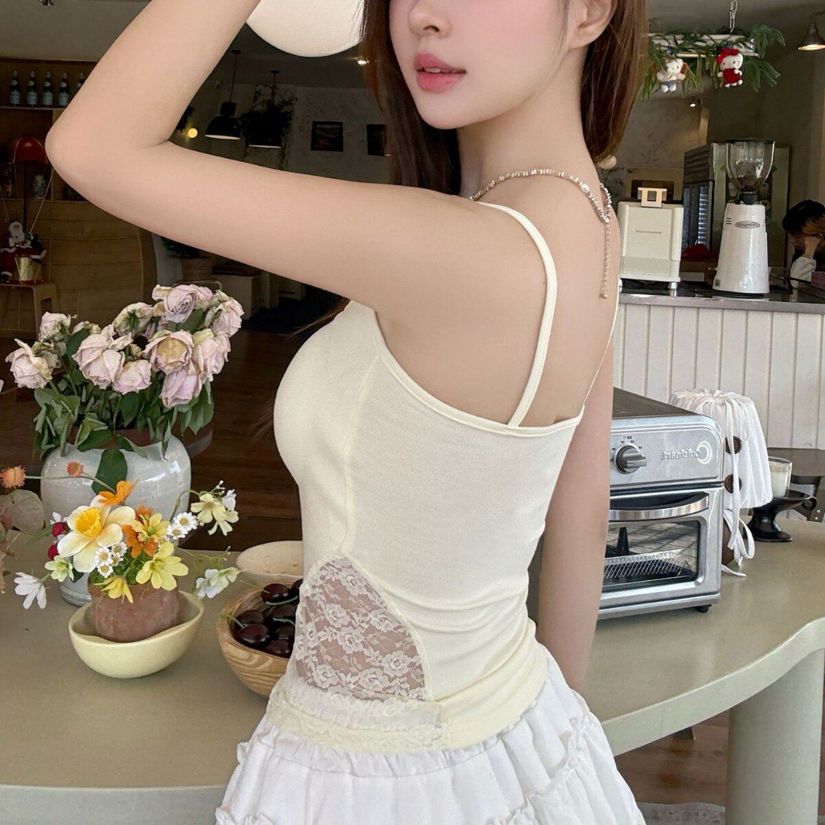 蕾丝拼接白色特别小吊带背心女夏外穿紧身带胸垫内搭无袖上衣黑色