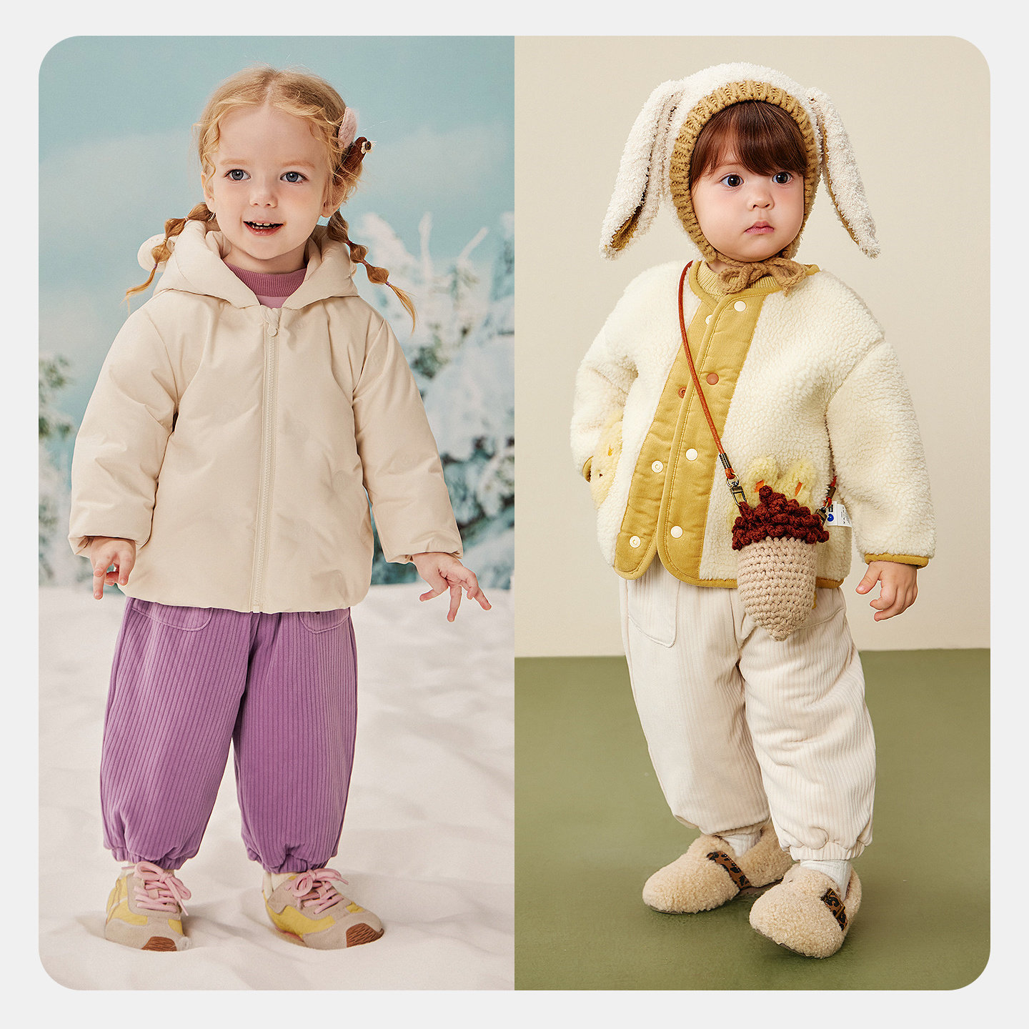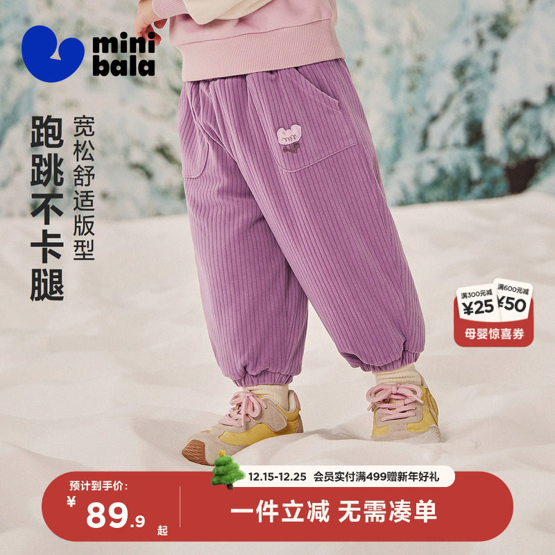 迷你巴拉男女童宝宝棉裤2025冬新品儿童保暖夹棉裤子柔软亲肤长裤