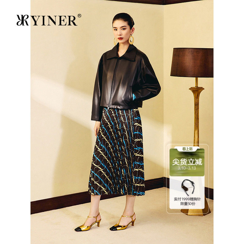 【1996系列】YINER音儿2025秋季新款哑光绵羊真皮蝙蝠袖皮衣夹克