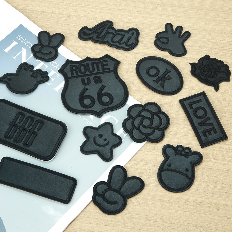 黑色自粘补丁贴免缝衣服羽绒服破洞无痕修补布贴皮衣专用刺绣贴布