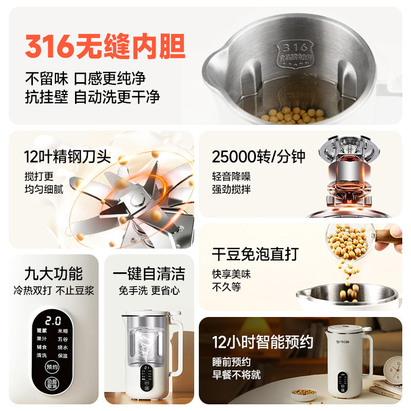 干豆成浆丨免煮免滤丨 预约定时丨一键清洗