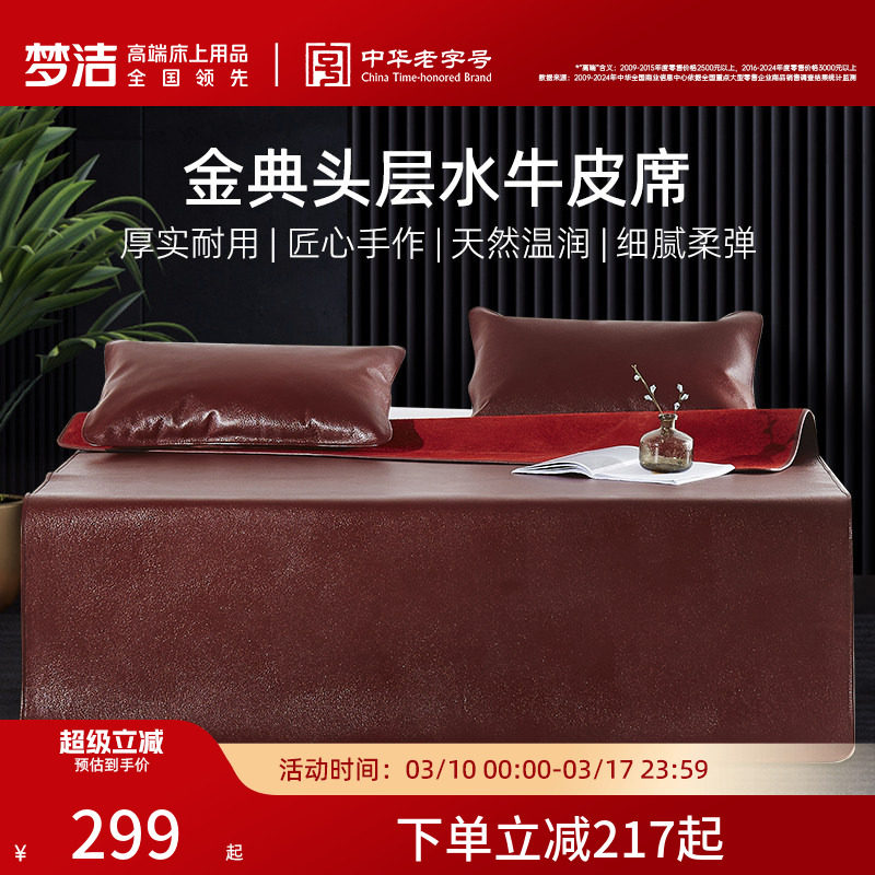 梦洁牛皮凉席头层水牛皮席子空调凉席三件套软席1.5m1.8m家用新款