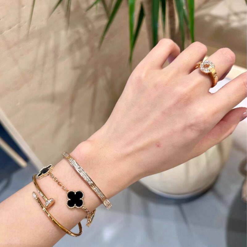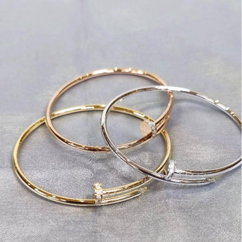 手镯女高级感轻奢小众窄版钛钢不掉色玫瑰金色钉子情侣手环黄金