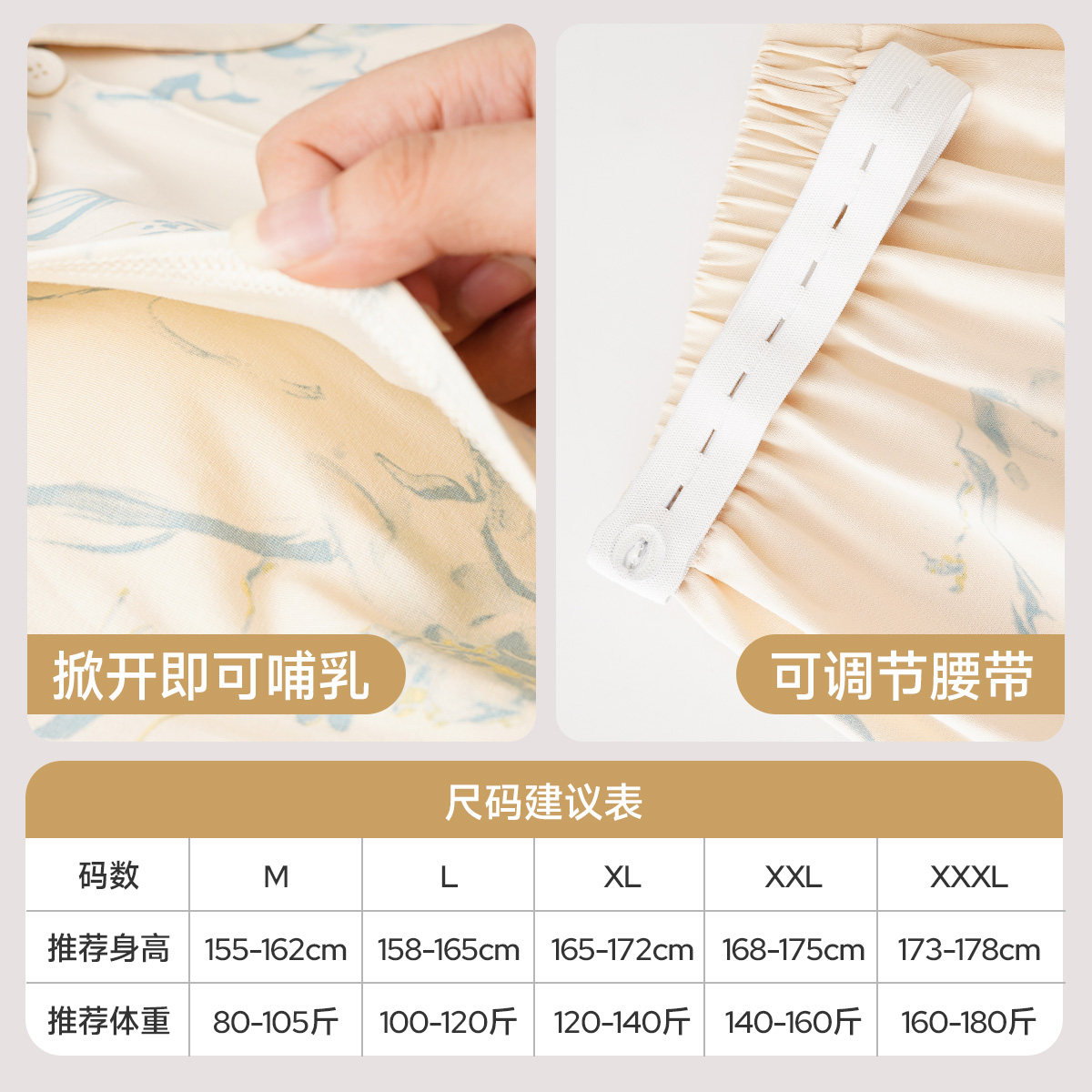 凉感莫代尔带胸垫月子服春夏季薄款产前产后春秋孕妇哺乳喂奶睡衣