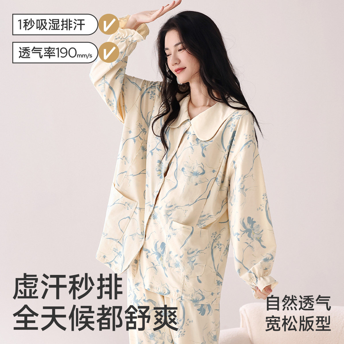 空气棉月子服秋冬季纯棉产后12月份全棉吸汗喂奶产妇哺乳孕妇睡衣