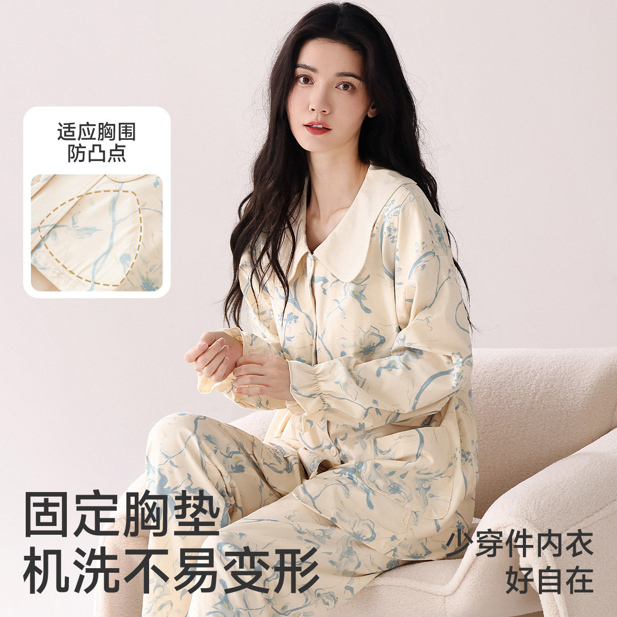 带胸垫月子服秋冬纯棉产后产妇11月份12孕妇家居服哺乳睡衣春秋季