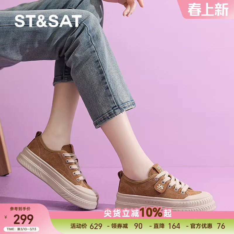 星期六真皮厚底板鞋女春季新款透气防滑运动鞋女士增高大头帆布鞋