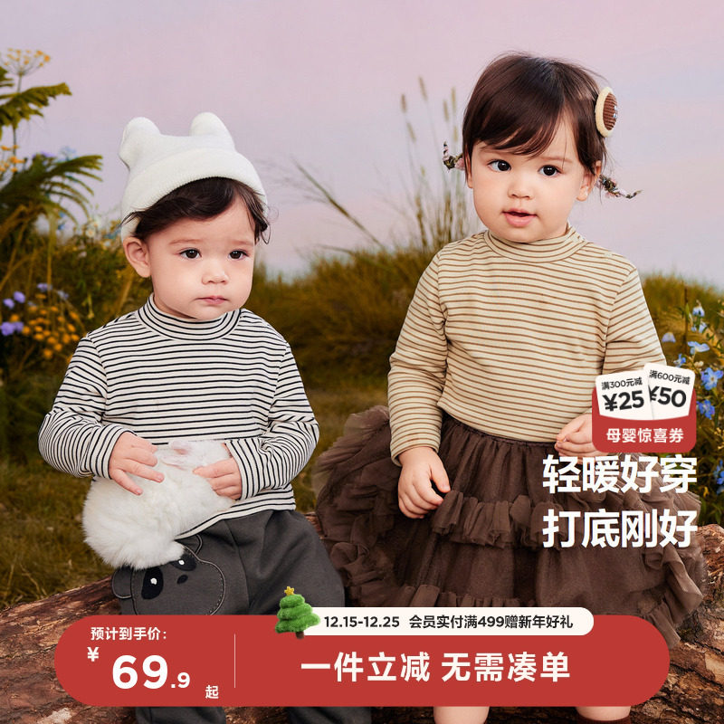 迷你巴拉巴拉婴儿宝宝男女童长袖T恤2025冬新款联名半高领打底衫