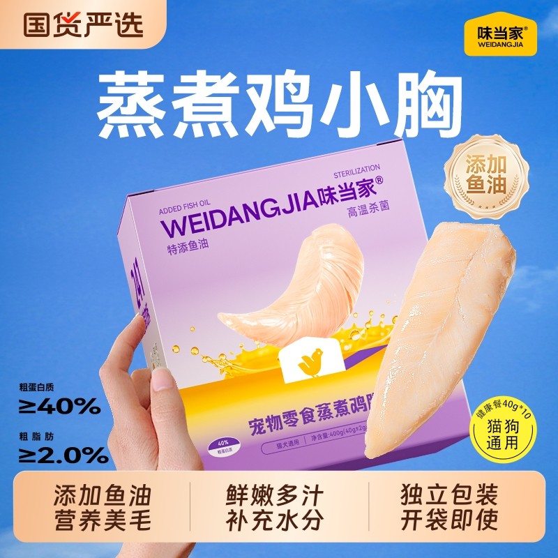 味当家鱼油蒸煮鸡胸肉猫咪零食鸡肉营养湿粮猫条美成幼猫零食宠物